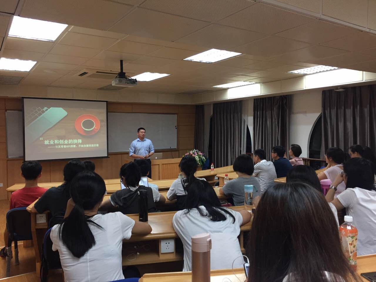 在介绍完自己的创业经历之后,沙先生与大家分享自己在创业中所获得心得:痛并快乐着。沙先生介绍了自己在工作和创业中所客服的种种阻力,以及自己现在依旧在面临的问题。但同时也告诫我们不要输给自己,要学会坚持,要有匠心精神,要从实践中学习管理知识……在讲座的最后,沙先生鼓励大家,世界是年轻人的,希望大家能够好好努力。