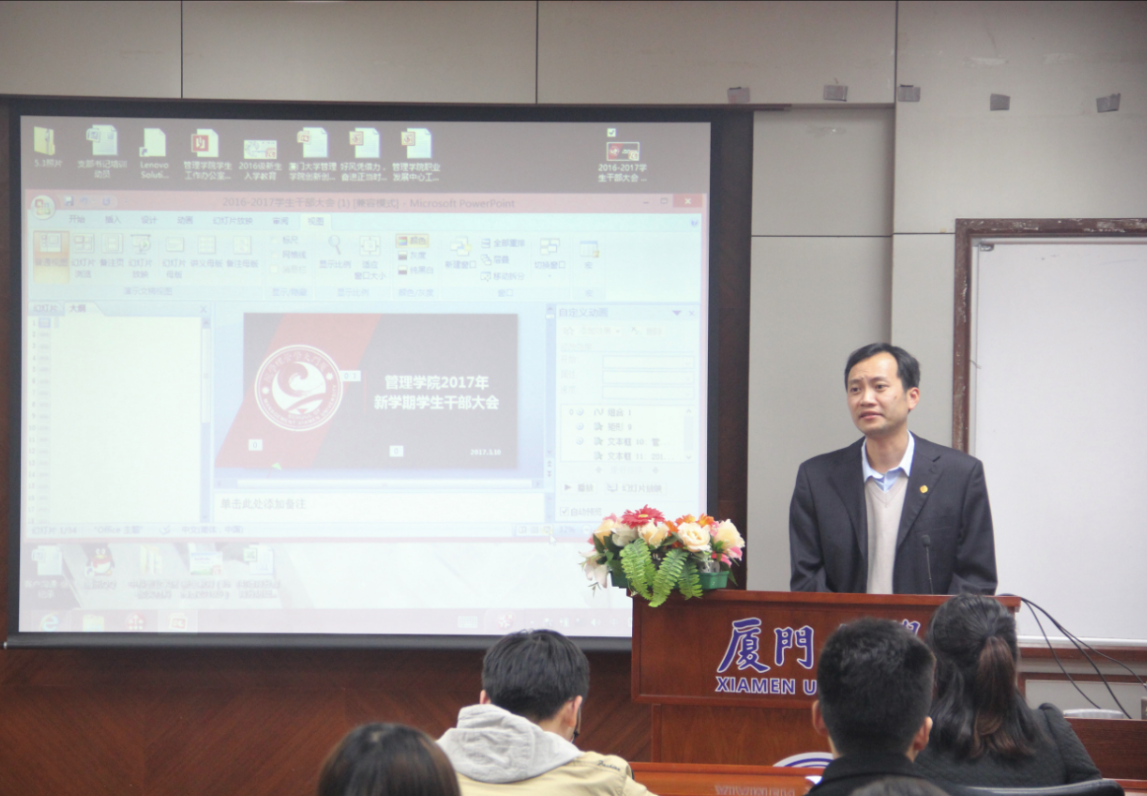 3月10日,管理学院新学期学生干部大会在嘉庚二201召开。管理学院党委副书记李峰、洪秋霞,学生工作办公室全体老师,以及来自学院本、研各学生组织的学生干部代表出席了会议。