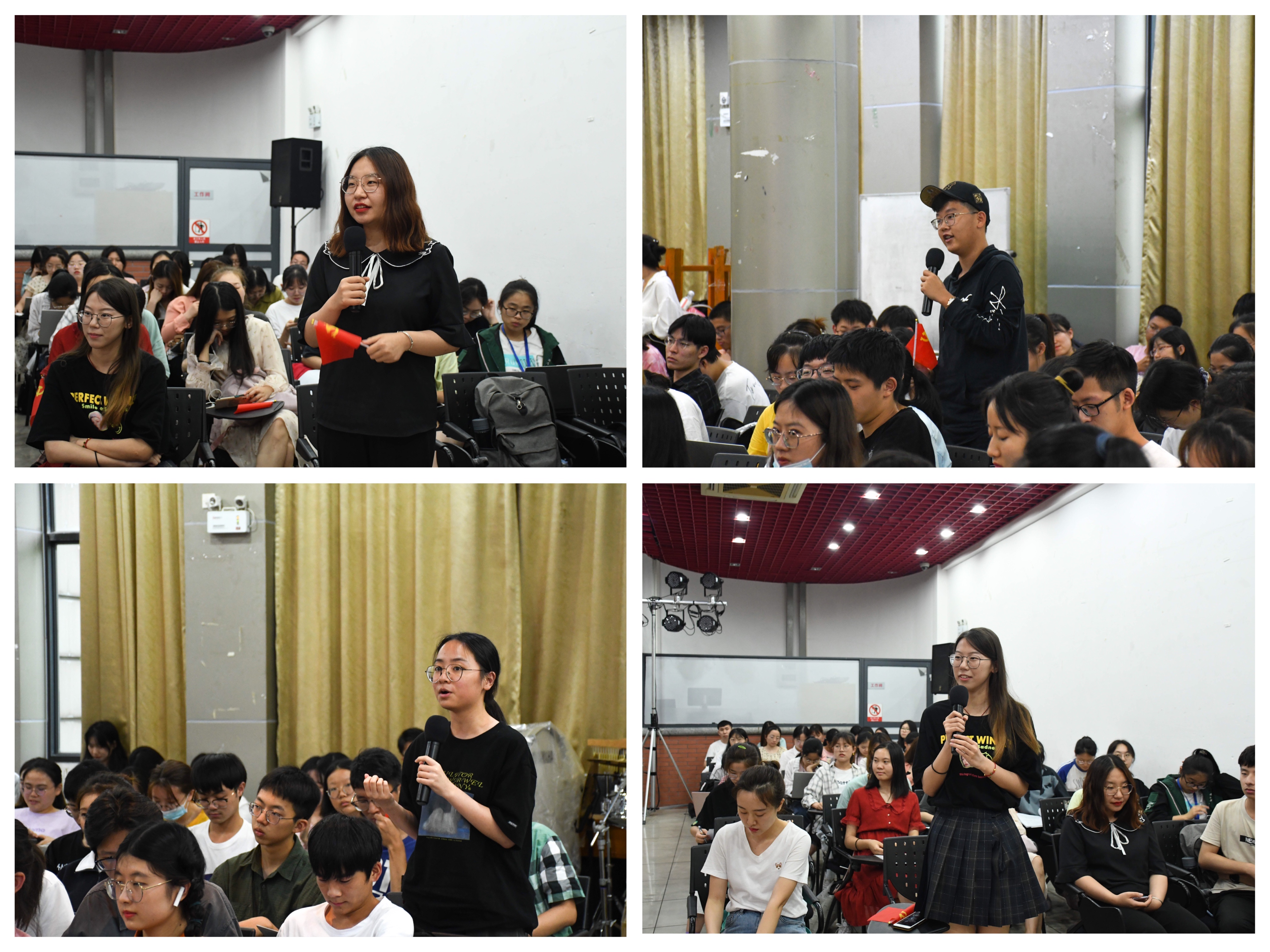 中国青年生逢盛世、肩负重任。老中青党员与入党积极分子对话既是一次勉励,也是一场接力。揭上锋老师和彭派同学用自身参军入伍的经历作为例子,阐述了青年大学生培养家国情怀、树立理想信念的重要性。彭派同学讲到自己研读《习近平的七年知青岁月》的收获与启发:“如今的青年学子要主动迎接挑战,学习习近平总书记勇于克服困难的决心,学会‘自找苦吃’。以小我融入大我,让青春与祖国同行。”在现场互动提问环节中,揭老师以幽默风趣的语言缓解同学们对“内卷”现象下朋辈竞争的焦虑,希望大家调整心态后积极面对和排解压力。魏敏老师对大学生求职价值取向进行引导,他认为同学们求职时不应该只看薪酬,要挖掘兴趣点、最关键是有所作为,真正为国家发展、社会进步、人民幸福做贡献。