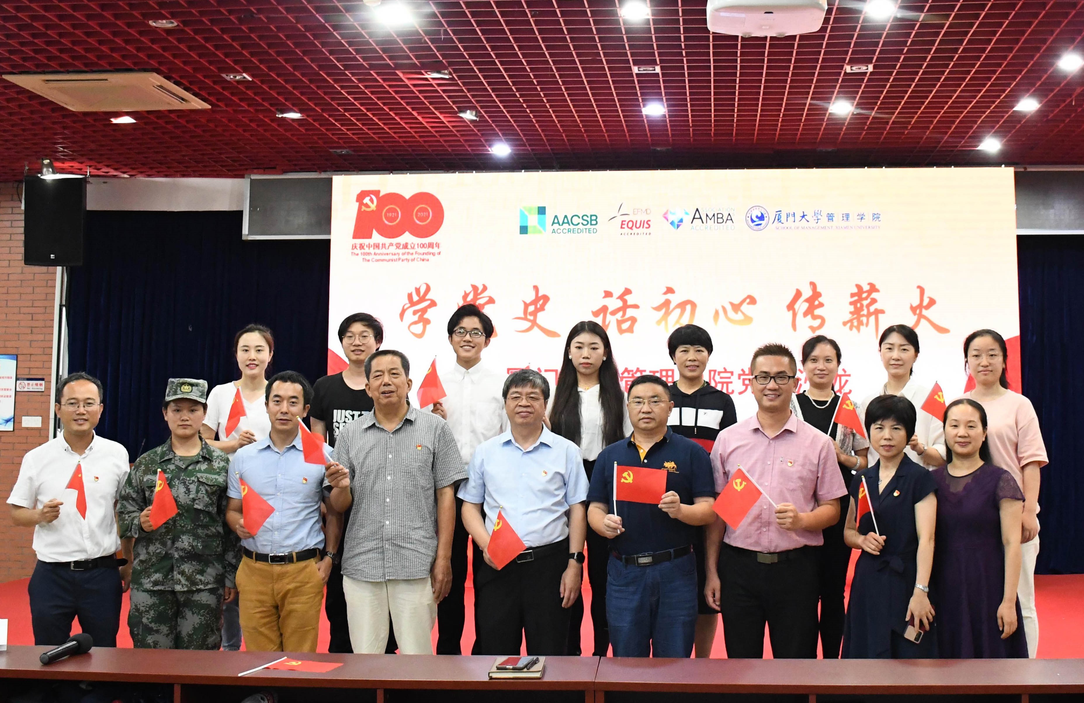 聆听党史故事,汲取奋进力量。为庆祝中国共产党成立100周年,加强本科生入党积极分子的党史学习教育和思想教育,管理学院党委于5月31日下午在自钦楼多功能厅举办“学党史、话初心、传薪火”党建沙龙。管理学院党委书记邱七星,厦门大学团委副书记梁振伟,管理学院党委副书记郑碧娇、戴蓥,学院师生党员代表和本科生入党积极分子出席本次活动。
