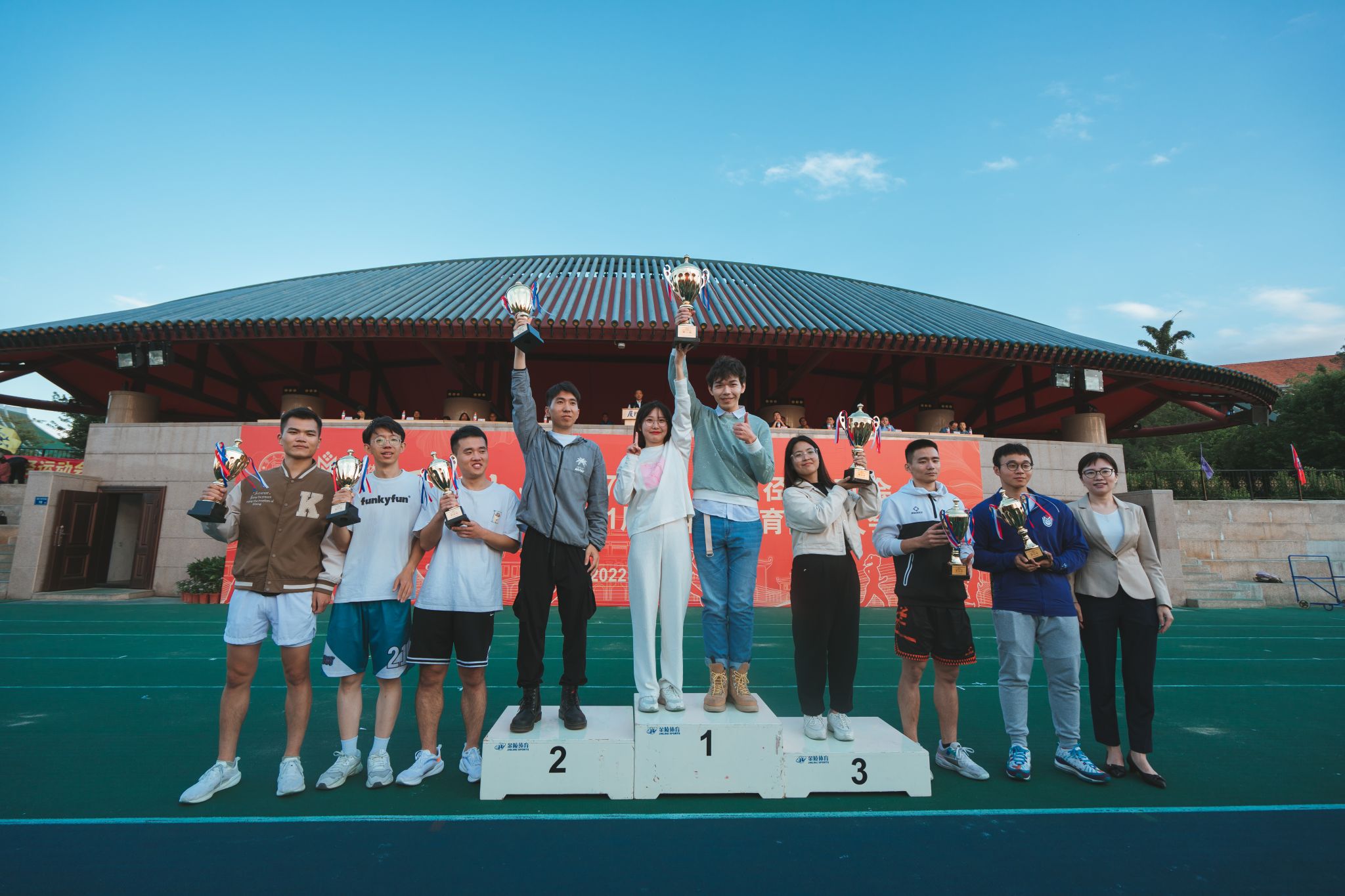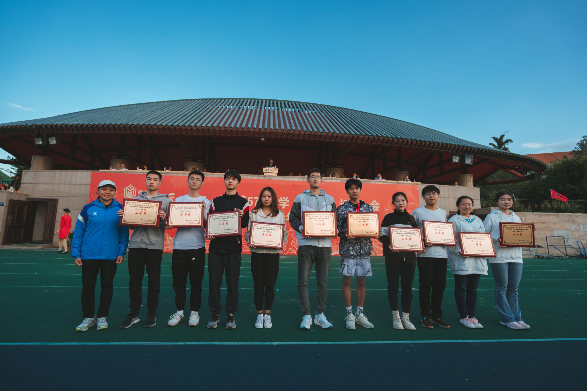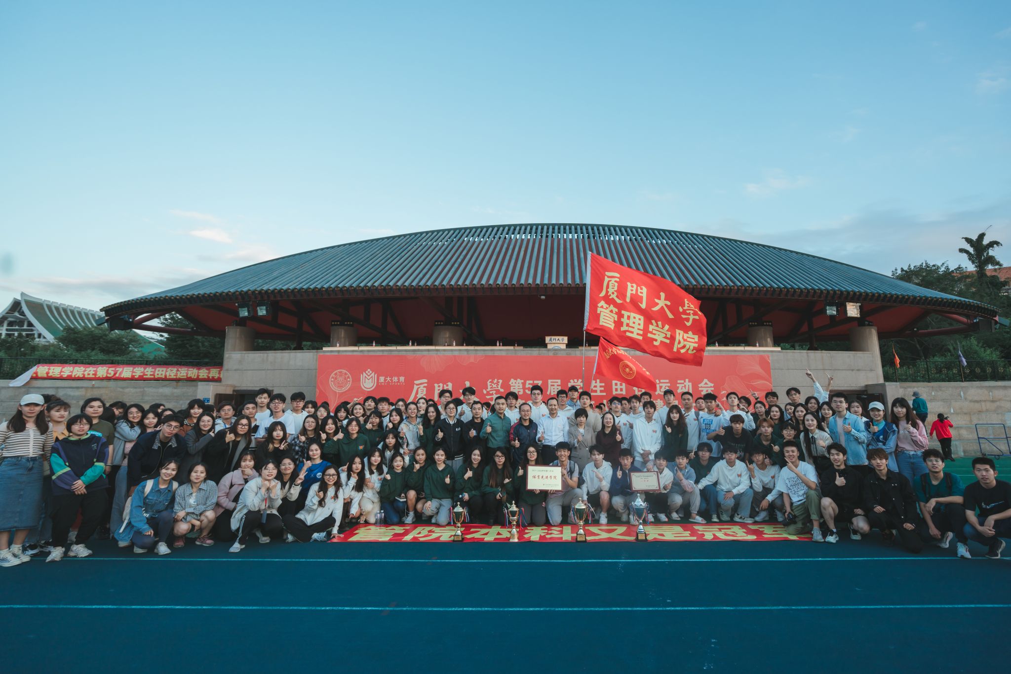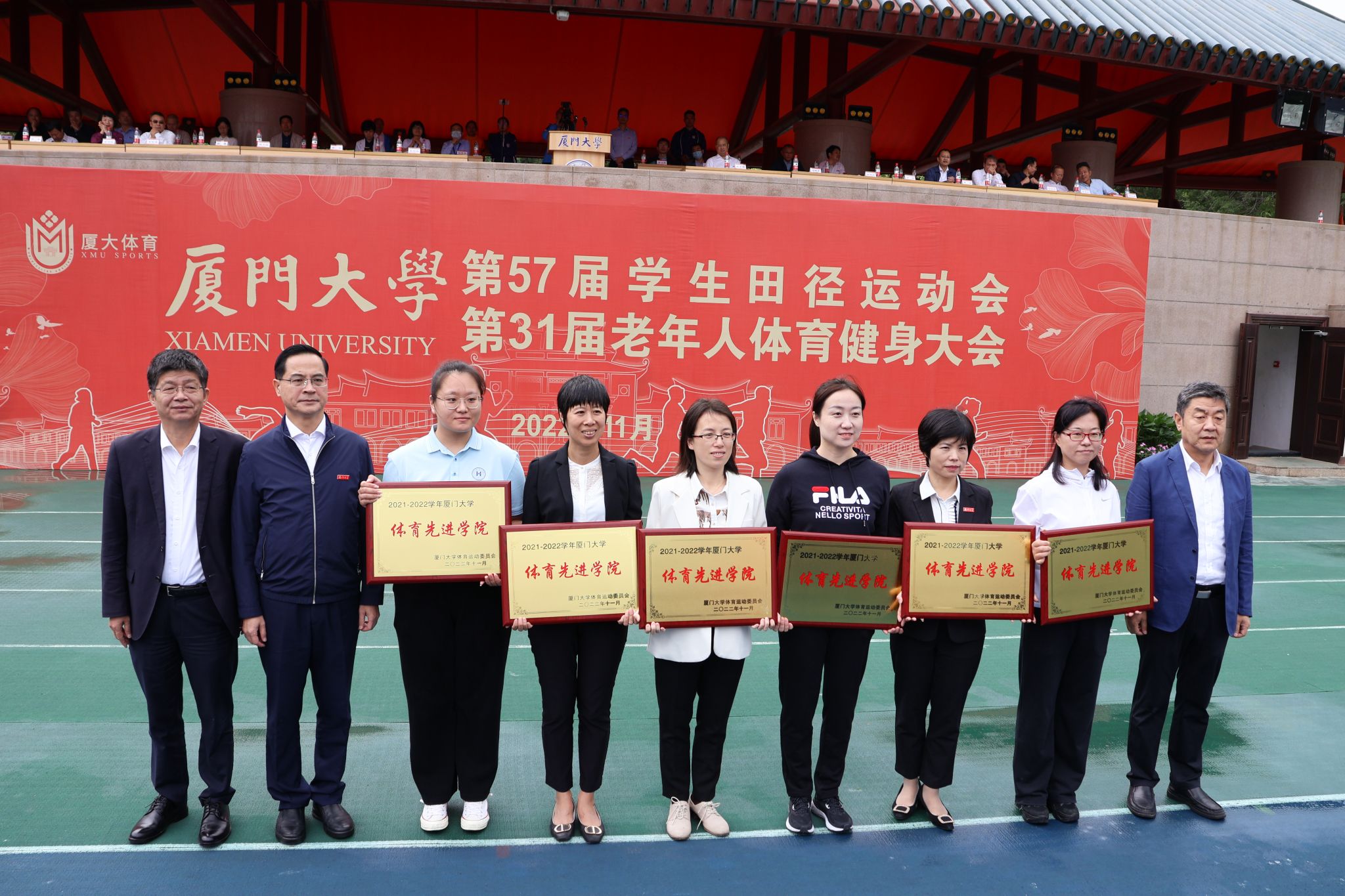 11月5日,厦门大学第57届学生田径运动会暨第31届老年人体育健身大会在思明校区演武场圆满闭幕。在本次运动会中,我院学生挥洒汗水、拼搏出彩,最终以本科生团体总分蝉联第一、研究生总分第三、学生团体总分第二、健身气功(学生八段锦)一等奖的好成绩圆满收官。学院以2021-2022年度体育总分排名第二的成绩荣获2021-2022年度“体育先进学院”、“体育竞赛总分亚军”的荣誉。再续往日荣光,更添崭新风采。
