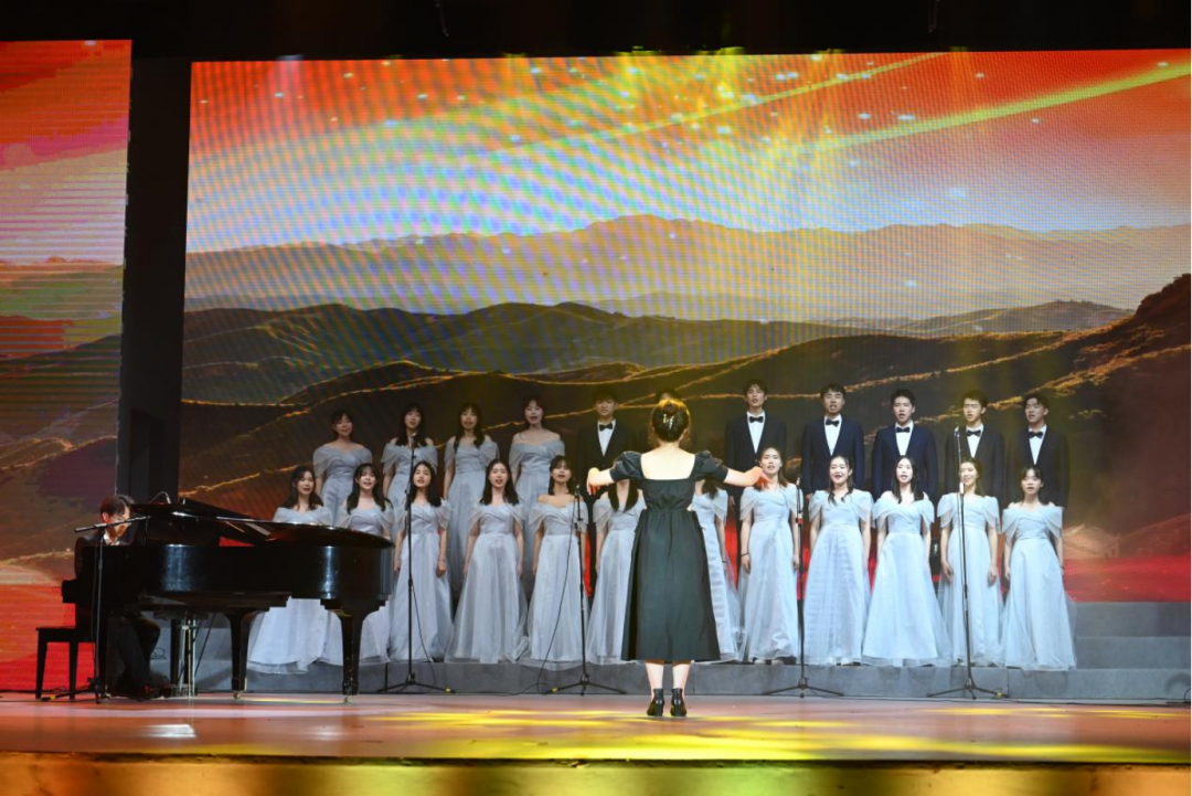 在《不忘初心》合唱节目中,管理学院合唱团用昂扬的歌声唱响新时代主旋律,唱出“不忘初心,砥砺前行”的时代要求。