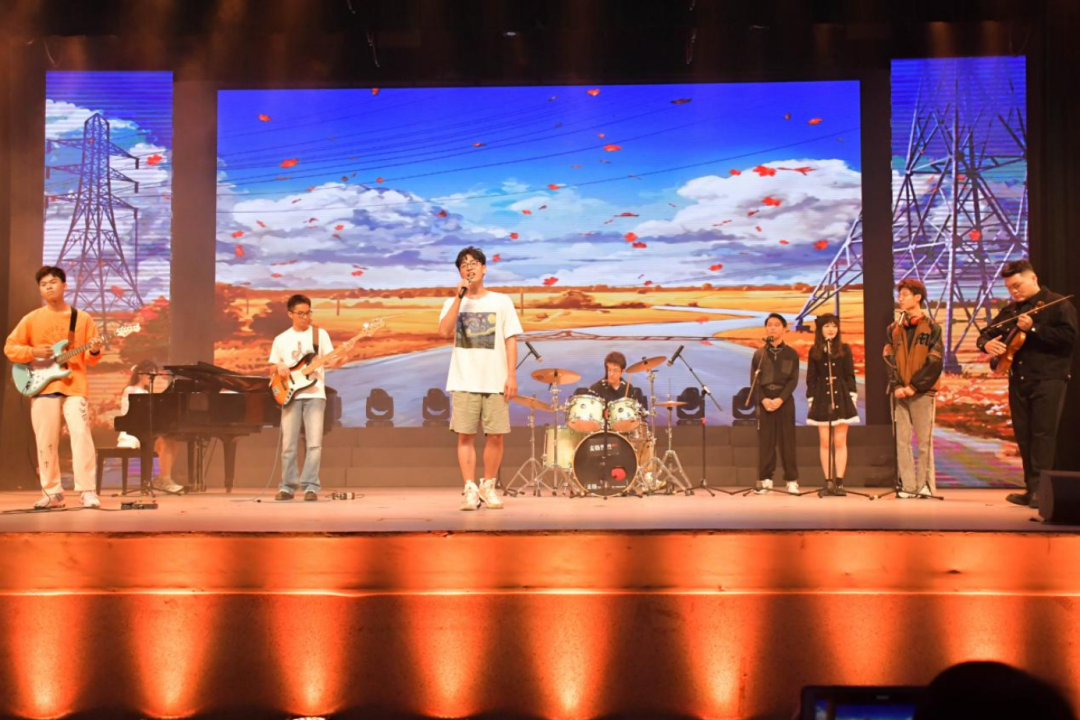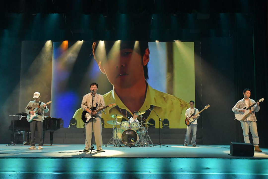 一条条精心剪辑的视频,一曲曲温馨的音乐,在同学们的欢呼中,乐队表演《七里香》拉开了晚会的帷幕。“几句是非,也无法将我的热情冷却”“窗台蝴蝶,像诗里纷飞的美丽章节”——经典的编曲、优美的旋律、默契的配合……共同演绎出了乐曲里青春的温馨与甜蜜,也让晚会气氛逐渐升温。