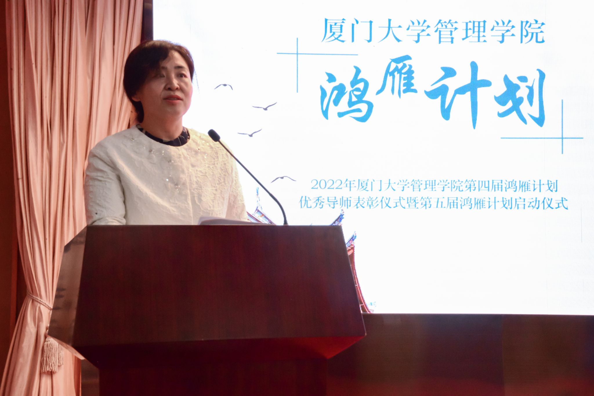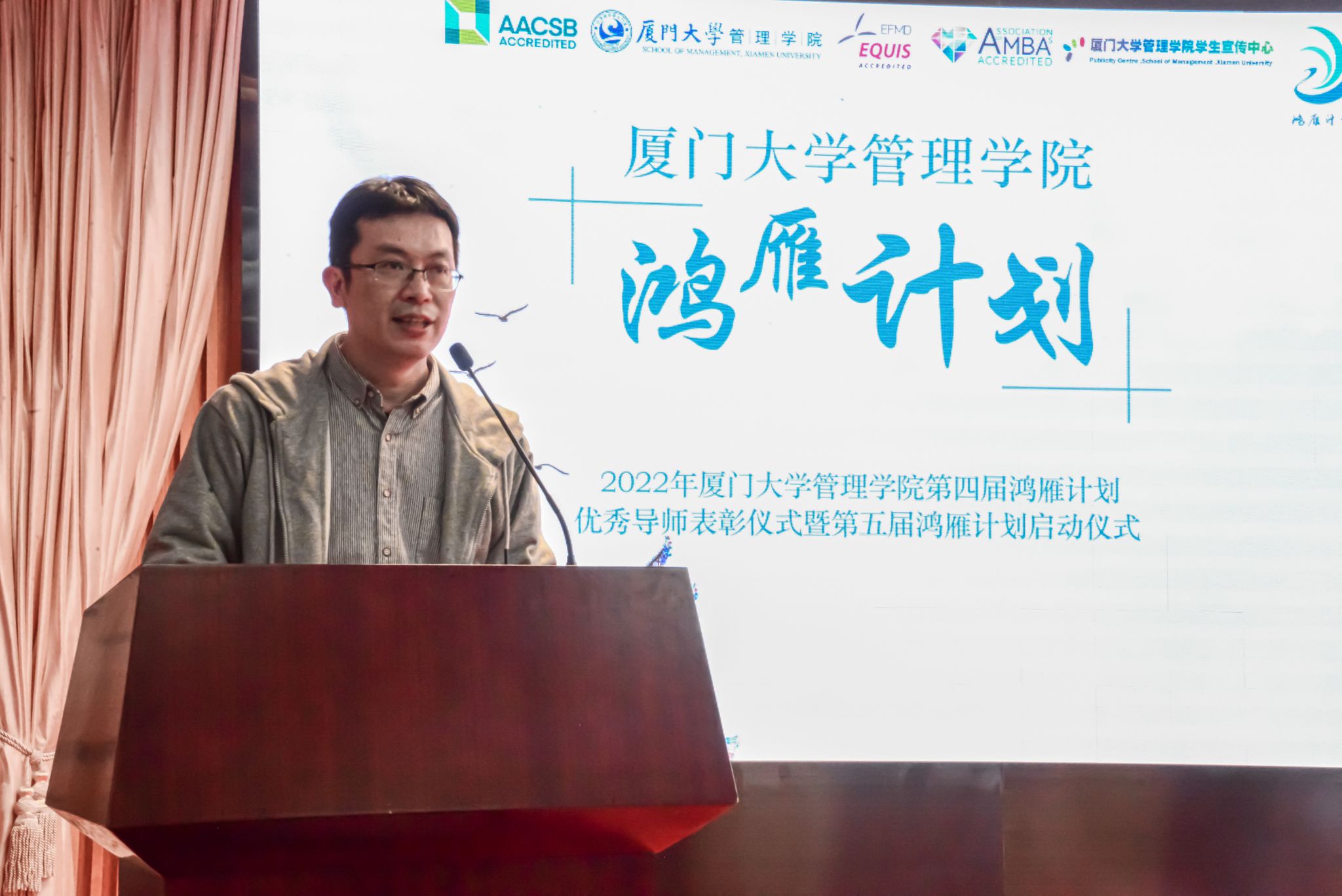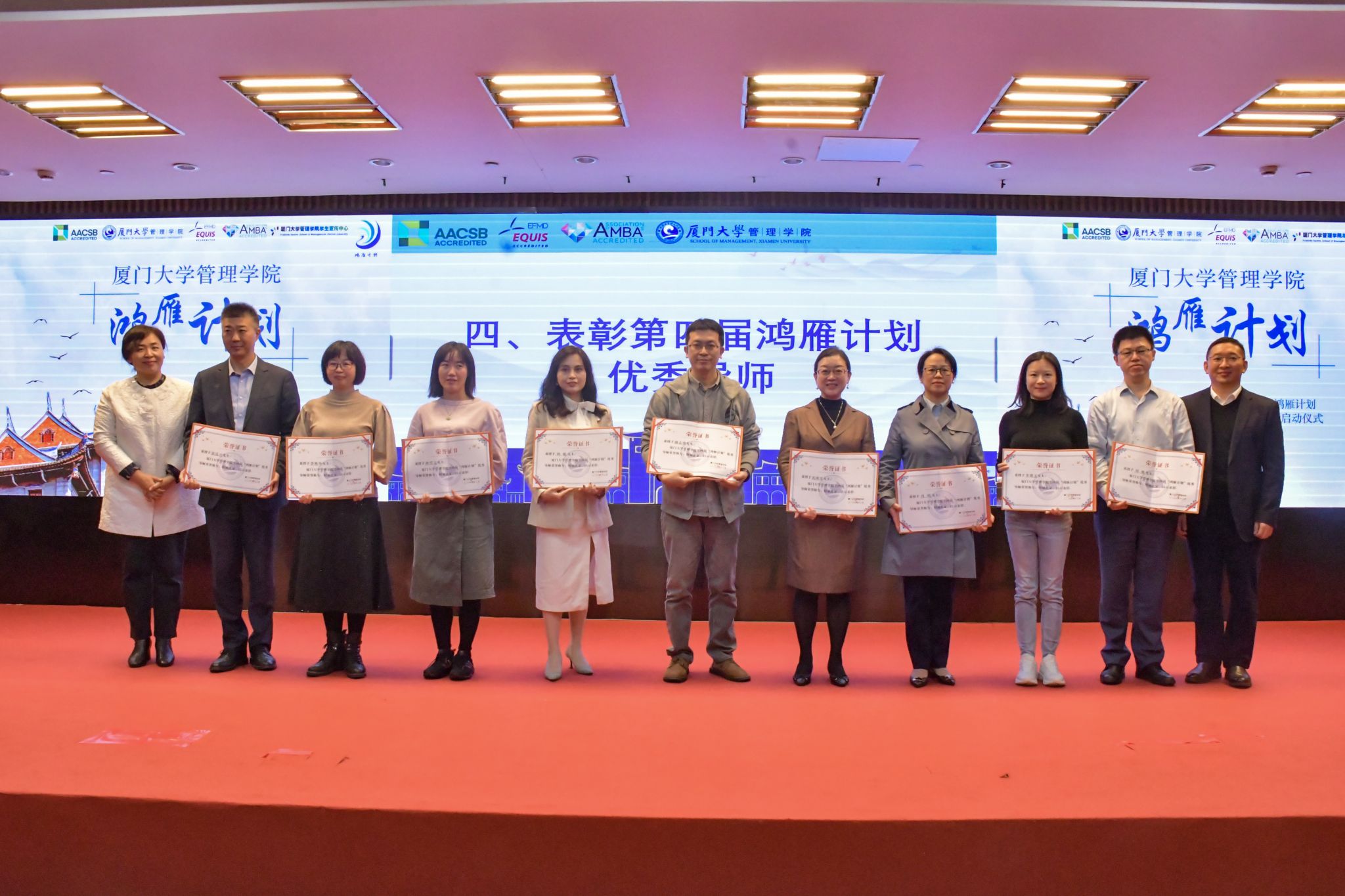 2022年12月9日晚上19点30分,厦门大学管理学院第四届鸿雁计划优秀导师表彰仪式暨2022年第五届鸿雁计划启动仪式在科学艺术中心一楼多功能厅顺利举行。厦门大学校友总会秘书处秘书长张伟、管理学院副院长白云涛、管理学院党委副书记戴蓥、校友总会秘书处联络部主任李绍玉、管理学院职业发展中心主任王燊、管理学院团委副书记揭上锋以及第四届鸿雁计划优秀导师代表、第五届鸿雁计划导师与学生代表出席了本次活动。仪式由管理学院兼职辅导员李奕凡主持。