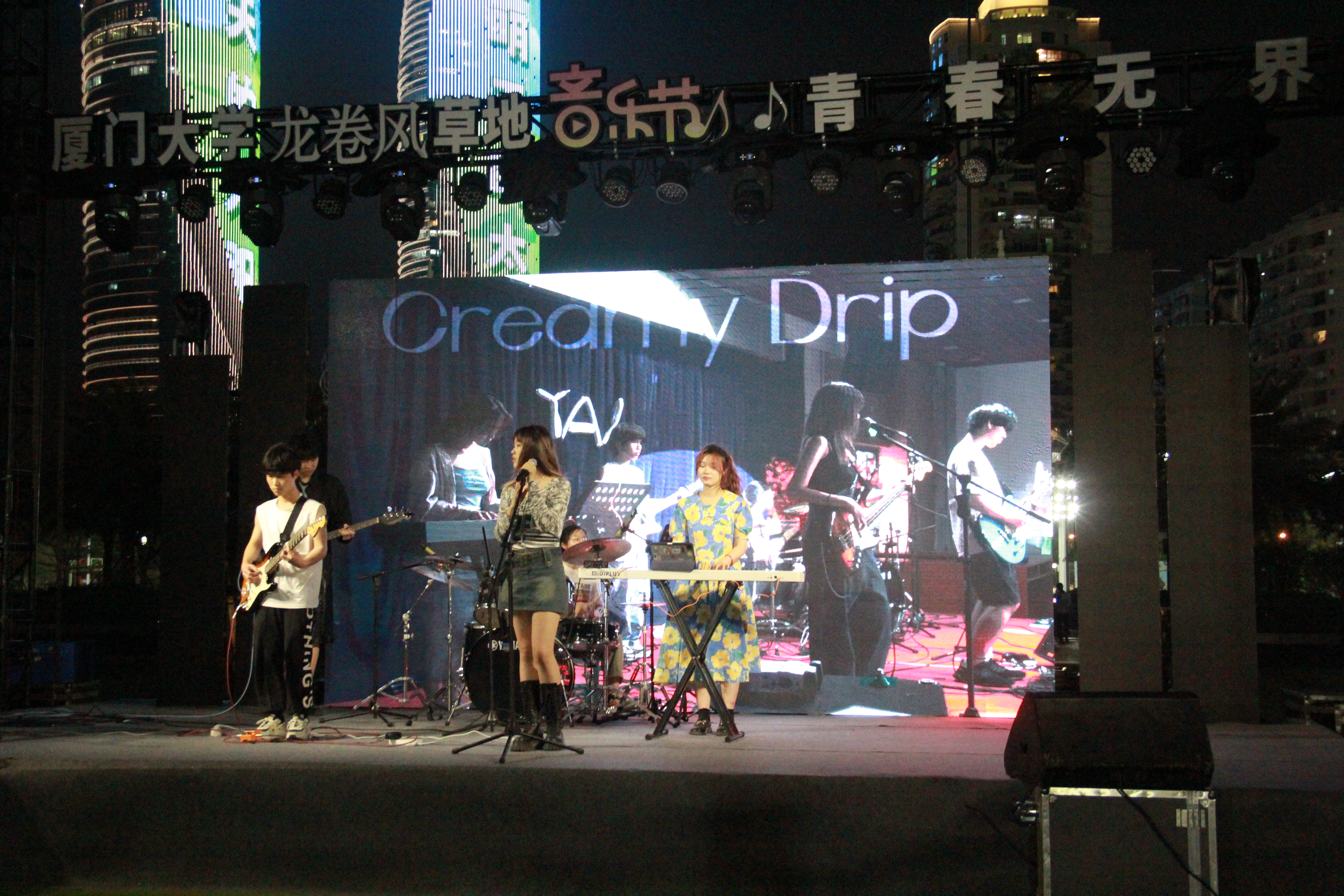 “爱情来得太快就像龙卷风”,在初夏的五月和厦大最配的一定是一场酣畅淋漓的音乐节。2023年5月27日的夏夜,一场由厦大学生自编自导自演的首届音乐节“青春无界:厦门大学‘龙卷风’草地音乐节”在厦门大学思明校区演武田径场举行。