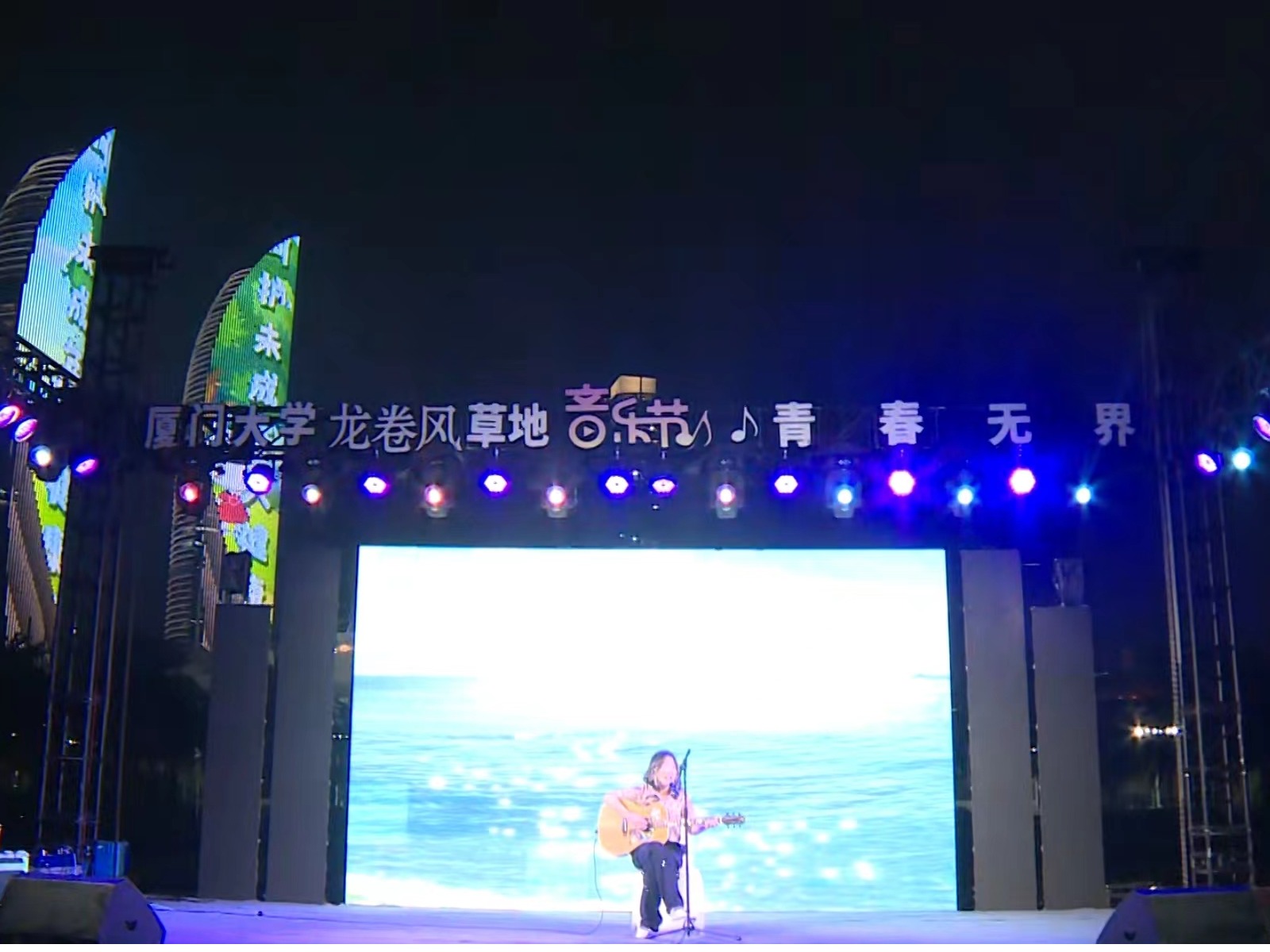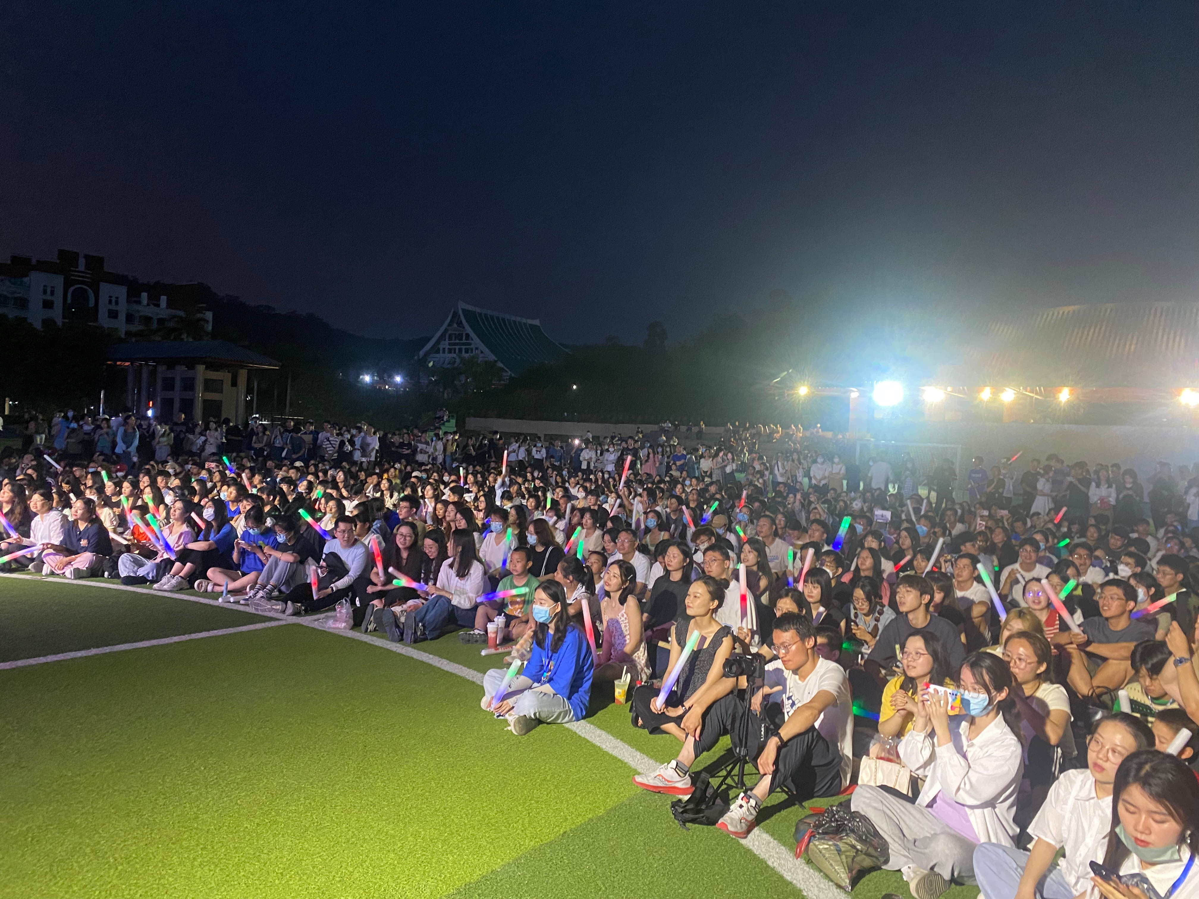 凉风习习,绿草如茵,激昂的青春在夜空下唱响。灯光摇曳,和声阵阵,偌大的演武场簇拥了几千人。观众们或坐或立,享受一场不亚于明星演唱会的音乐盛宴。应邀登台演出的27个节目,从全校思明、翔安两个校区近90个节目的海选中层层选拔中脱颖而出,阵容强大,盛况空前。