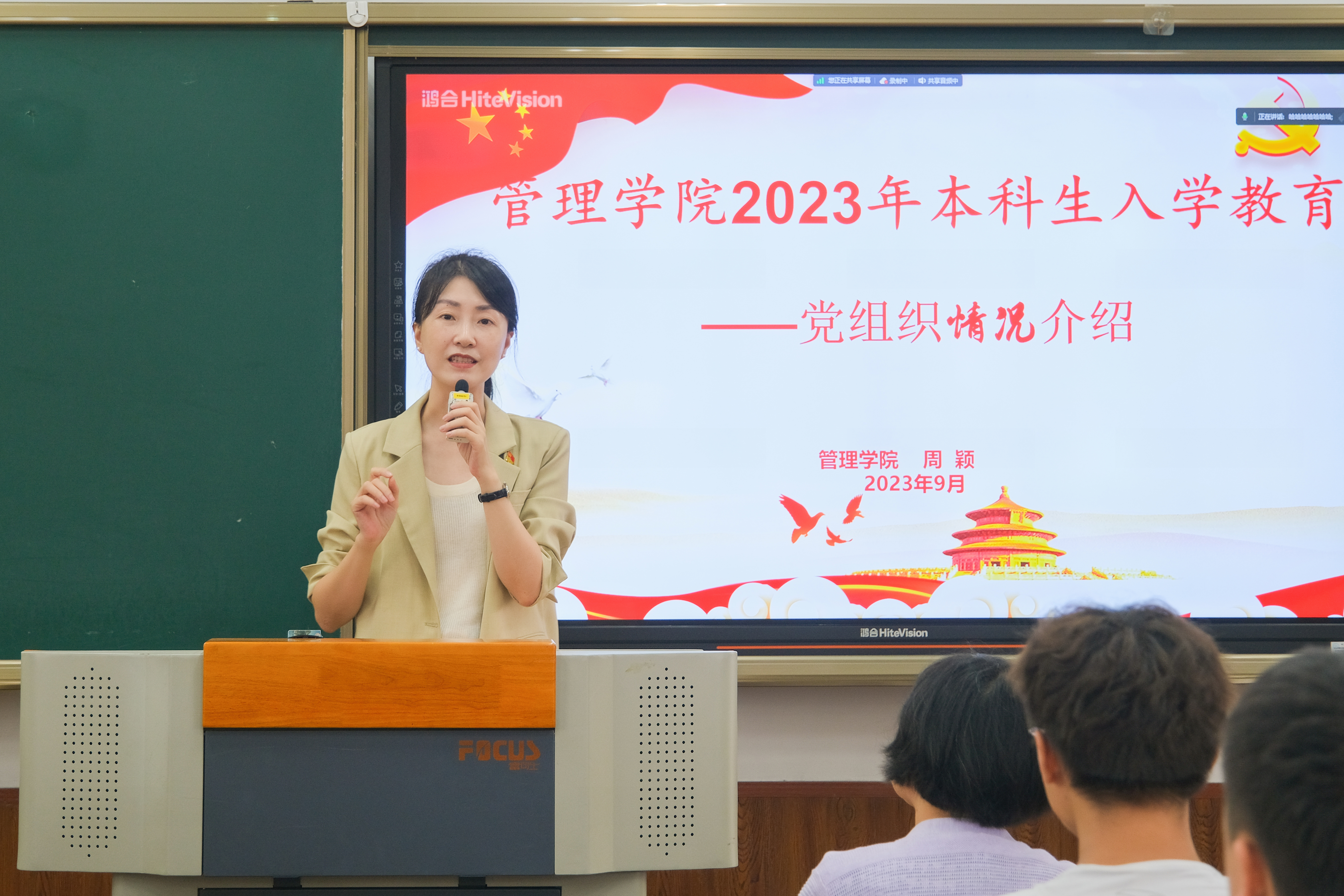 管理学院党委副书记郑碧娇,副院长白云涛,党委组织员周颖,本科生教学工作办公室副主任石云,校友与对外合作办公室副主任王燊,外事办秘书黄小明,辅导员赵梁杰出席,2023级全体本科新生参加活动。