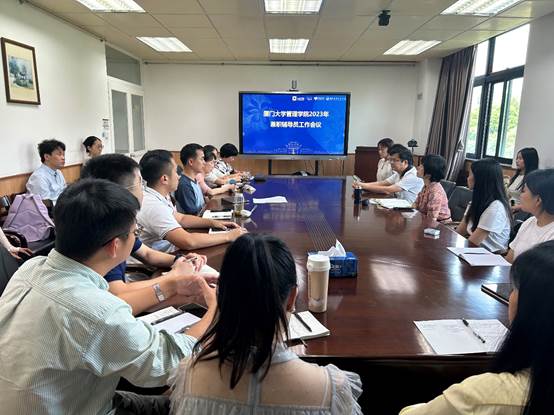 为进一步加强管理学院兼职辅导员队伍建设,增进学工干部之间的情感交流,9月20日上午,学院在嘉庚一302会议室召开了“厦门大学管理学院2023年兼职辅导员工作会议”。管理学院党委副书记郑碧娇、周民钦,党务秘书江娇,党委组织员周颖,学工组全体成员、全体兼职辅导员参加会议。会议由学院团委书记蒋超杰主持。