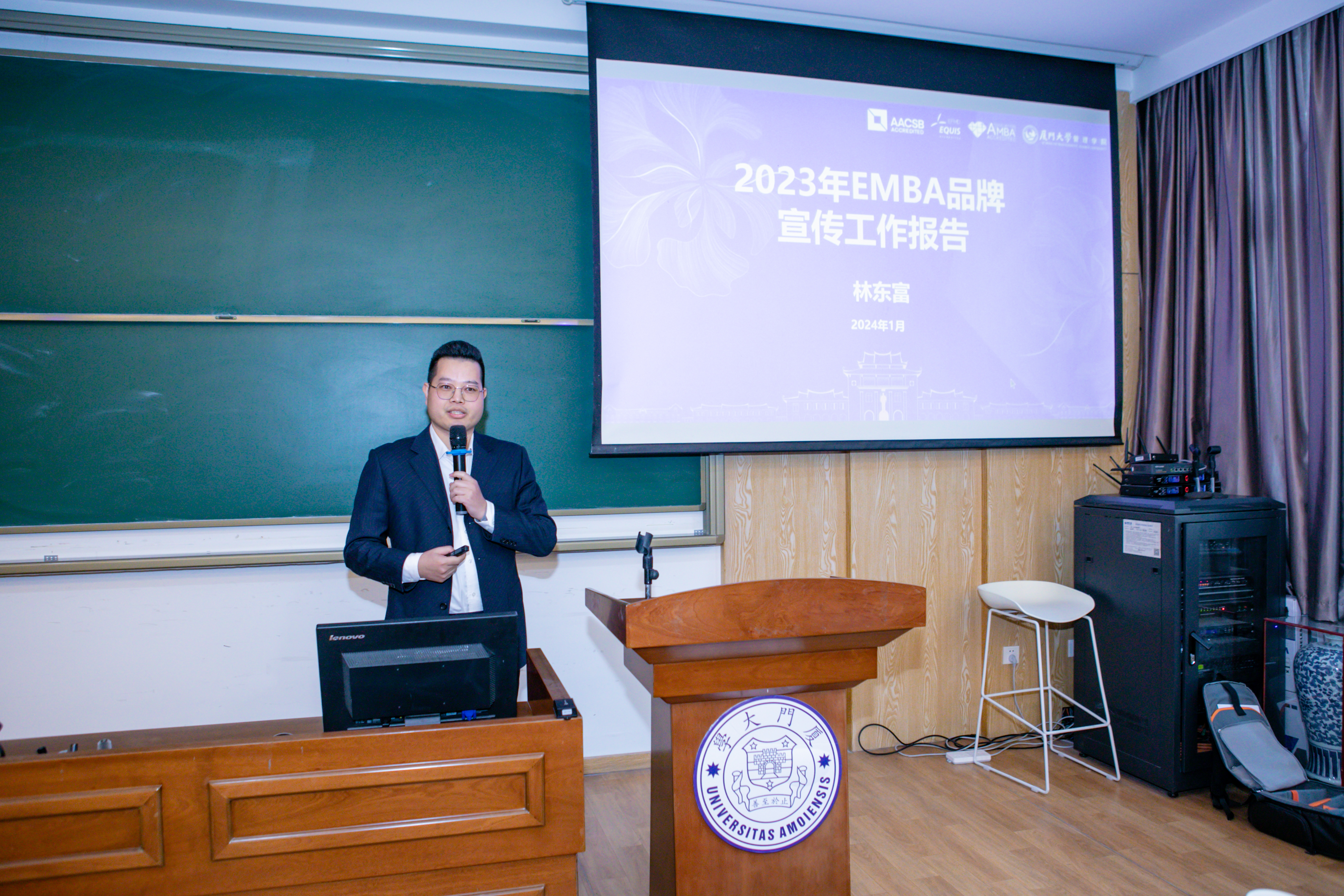 在获奖师生代表发言环节,曹惠真从学生工作的角度切入,分享网络新媒体育人工作的心得感悟,强调全局观、责任心、洞察力的重要性。林东富结合自身从事EMBA品牌宣传的工作经历,总结2023年部门宣传成果,分享宣传实践过程中的宝贵经验。刘佳鹭分享了入学以来在学生宣传中心工作的珍贵经历,用“热爱与包容”“付出与回馈”两组关键词阐述参与学生宣传工作的收获。
