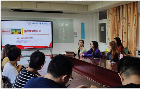 首先由主持人康璿同志向大家介绍 “立足岗位做表率”的时代内涵。立足岗位做表率是新时代的新要求、是贯彻落实党的十九大精神的有力举措、更是我们党员不忘初心、牢记使命的具体实践,关于如何做到“立足岗位做表率”,康璿同志总结了三点内容,一是善于学习,做解放思想的表率。如《习近平关于“不忘初心、牢记使命”论述摘编》、学习强国APP等,只有勤奋学习,深入实际,才能在持续不懈地锻炼中成才,在日新月异的时代变革中成长。二是敢于突破,做改革创新的表率,要做到超前思考、超前研究、超前谋划、超前服务,要善于发现新问题,研究新问题,多角度思考,多换位思考,提出新举措,努力开辟工作的新境界。三是修身养性,做高尚道德的表率。学生党员要带头做高尚道德的表率,践行社会主义核心价值观,规范遵守社会公德、学术道德、个人品德,积极培养正确的人生观、价值观,为社会主义事业建设培养自身能力。