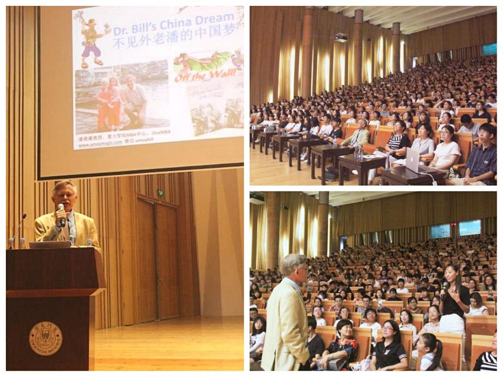 10月11日下午,管理学院“不忘初心、牢记使命”主题教育系列讲座在科艺中心音乐厅举行,管理学院党政领导、各系所中心教职工党员及2019级全体新生集中参会。管理学院教授潘维廉以幽默风趣的讲述将“‘不见外’老潘的中国梦”娓娓道来,场内座无虚席,掌声与笑语不断。讲座由管理学院党委副书记戴蓥主持。