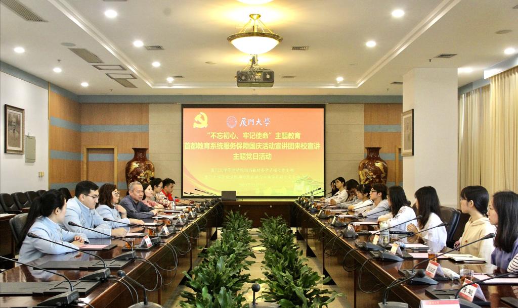 姚有新首先对远道而来的首都教育系统服务保障国庆活动宣讲团表达了诚挚欢迎,并介绍了厦门大学的优良传统与基本情况。他指出,厦门大学是与中国共产党同龄的一所高校,有着较为扎实的党建基础。在98年的办学历史中,学校涌现出无数为民族独立、国家富强奋斗的仁人志士,学校以典型人物、典型事迹为依托,积极开展形式丰富的教育与学习活动,收效较佳。