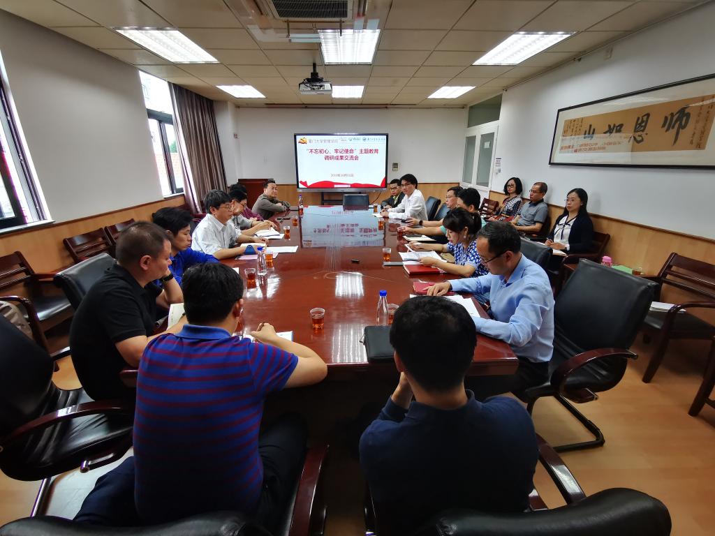 10月31日上午,厦门大学管理学院“不忘初心、牢记使命”主题教育领导班子成员调研成果交流会在嘉庚一301召开。管理学院党委书记邱七星、院长叶建明,副书记洪秋霞、戴蓥,副院长徐迪、于李胜,各系/中心负责人、教工党支部书记、工会主席、院办主任、党务秘书、团委书记等有关同志参加会议。厦门大学主题教育第四巡回指导组组长、原软件学院党委书记杨敬达出席。交流会由邱七星主持。