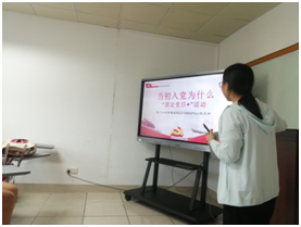 杨舒晨同志作了活动总结,她提到,党员不仅是一种身份,更是一种责任;党员不仅是一种荣誉,更是无私的奉献。要时刻谨记自己光荣的党员身份,时刻谨记中国共产党为人民服务的宗旨,将个人梦想融入中国梦之中,共同为实现伟大的民族复兴而不懈奋斗。