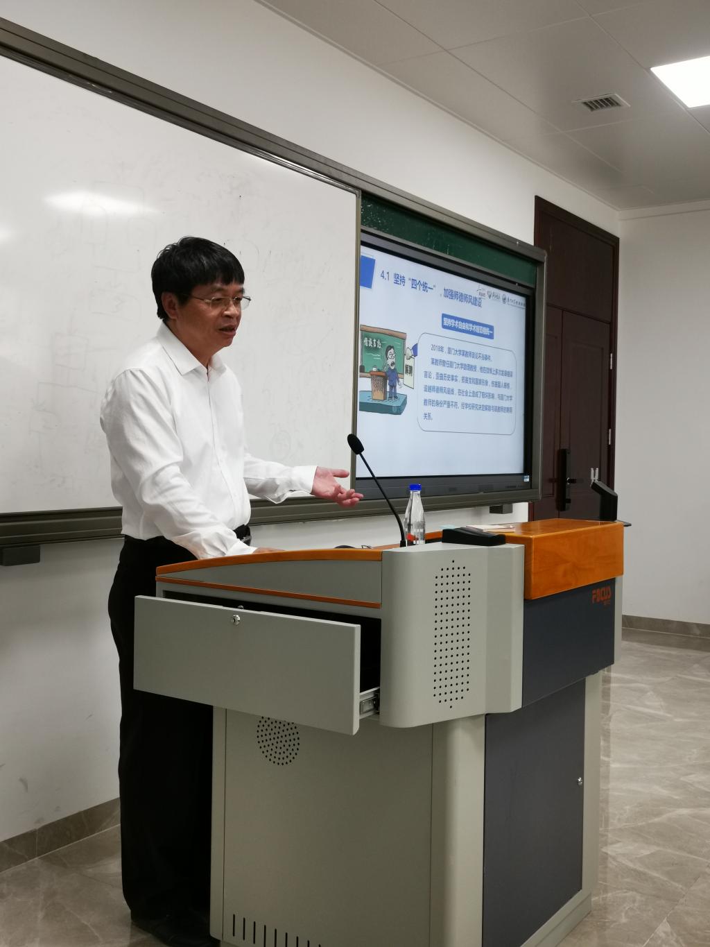 邱七星围绕“立德树人的时代背景”“当代教师的师德师风现状”“当前教师在立德树人过程中存在的问题”“如何从立德树人方面做好学生思想政治工作”等方面展开讲述。他指出,党的十九大从新时代坚持和发展中国特色社会主义的战略高度,作出了优先发展教育事业、加快教育现代化、建设教育强国的重大部署,教育是民族振兴、社会进步的重要基石,是功在当代、利在千秋的德政工程。百年大计,教育为本,教育大计,教师为本,作为一名高校教师,不仅承担着传道授业解惑的任务,还承担着“培养什么人、怎么培养人、为谁培养人”的重大任务。市场化环境下我国大学的内部运行发生了巨大的变化,教育者和受教育者的角色也在发生变化,我们要树立终身制的人才培养观念,做传播知识、思想和真理的工作,更做塑造灵魂、生命和人的工作,努力做一个让学生一辈子记住、一辈子怀念的老师。