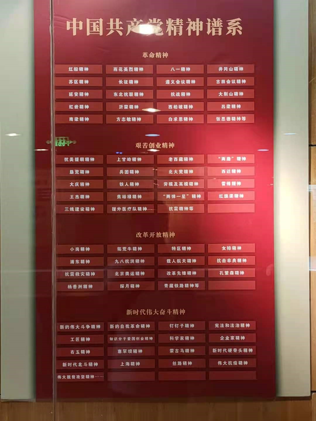在参观“理想照耀中国”主题展时,党员们被中国共产党精神谱系震撼。该谱系详细介绍了从1921年中国共产党成立至今,中共党员与中国人民所创造的一系列精神,并用框架的形式予以展现,让参观者对中国共产党精神有了清晰的脉络认知,也让我们再次感受到了中国共产党与中国人民的伟大。