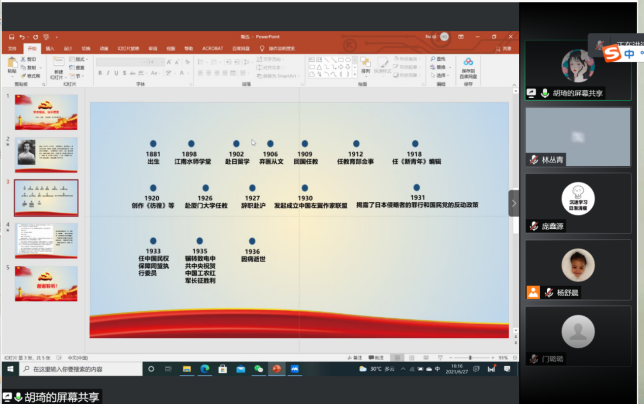 6月27日下午,管理学院2019级MPAcc党支部于线上通过腾讯会议召开“学史增信,筑牢思想根基”主题“固定党日+”活动。党支部书记杨舒晨带领支部党员回顾了入党初心,支部章格格、胡琦、杨文颖三名同志分享了先辈的革命英雄事迹。党支部28名党员参加,活动由杨舒晨主持。