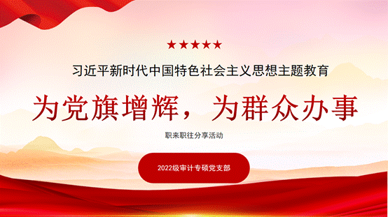 为推动学习贯彻习近平新时代中国特色社会主义思想主题教育走深走实,6月9日晚,厦门大学管理学院2022级审计专硕党支部在嘉庚一409开展“为党旗增辉,为群众办事”主题党日活动。结合同学们的专业与实习安排,为同学们带来一场生动的职来职往分享活动。