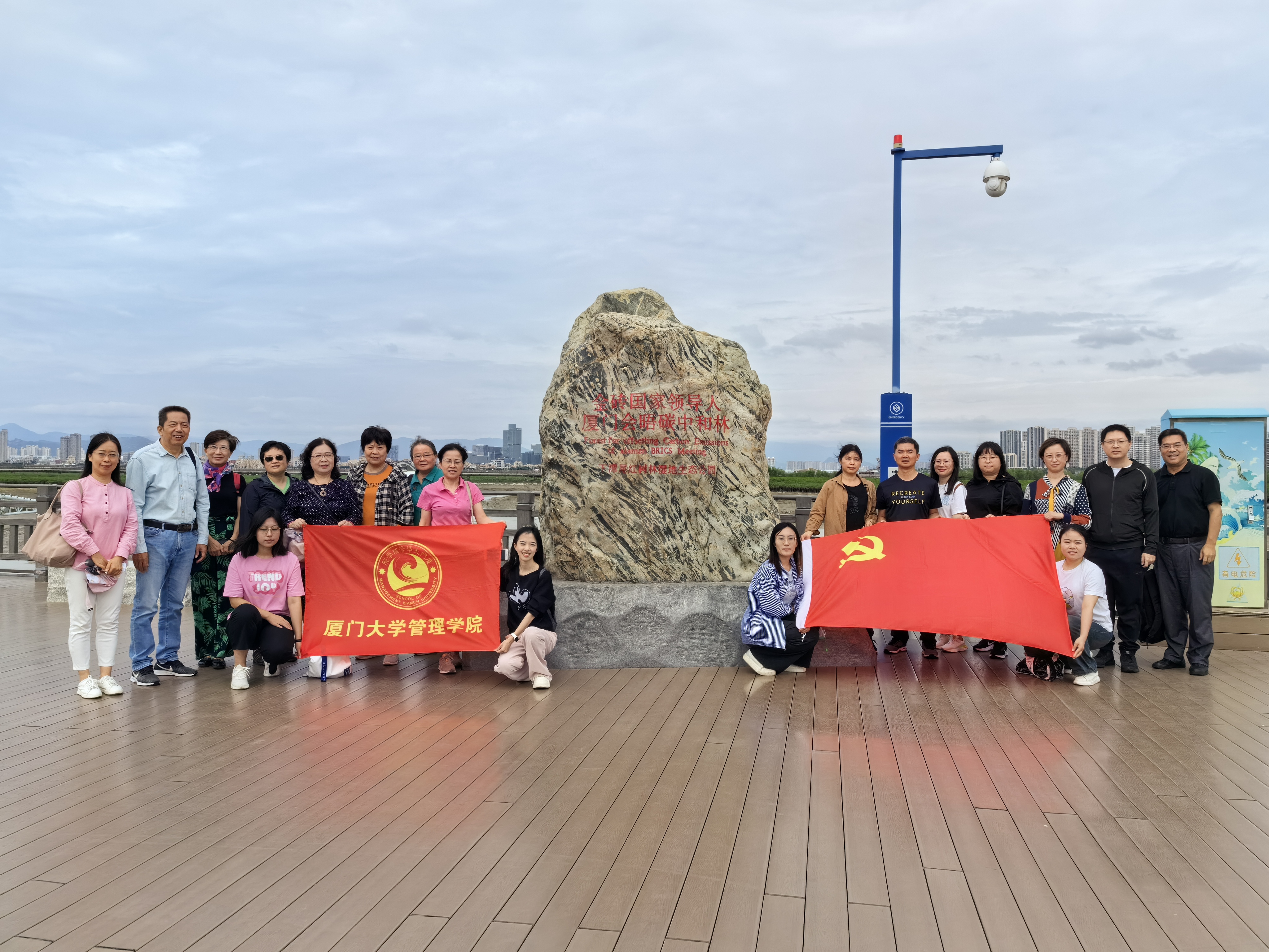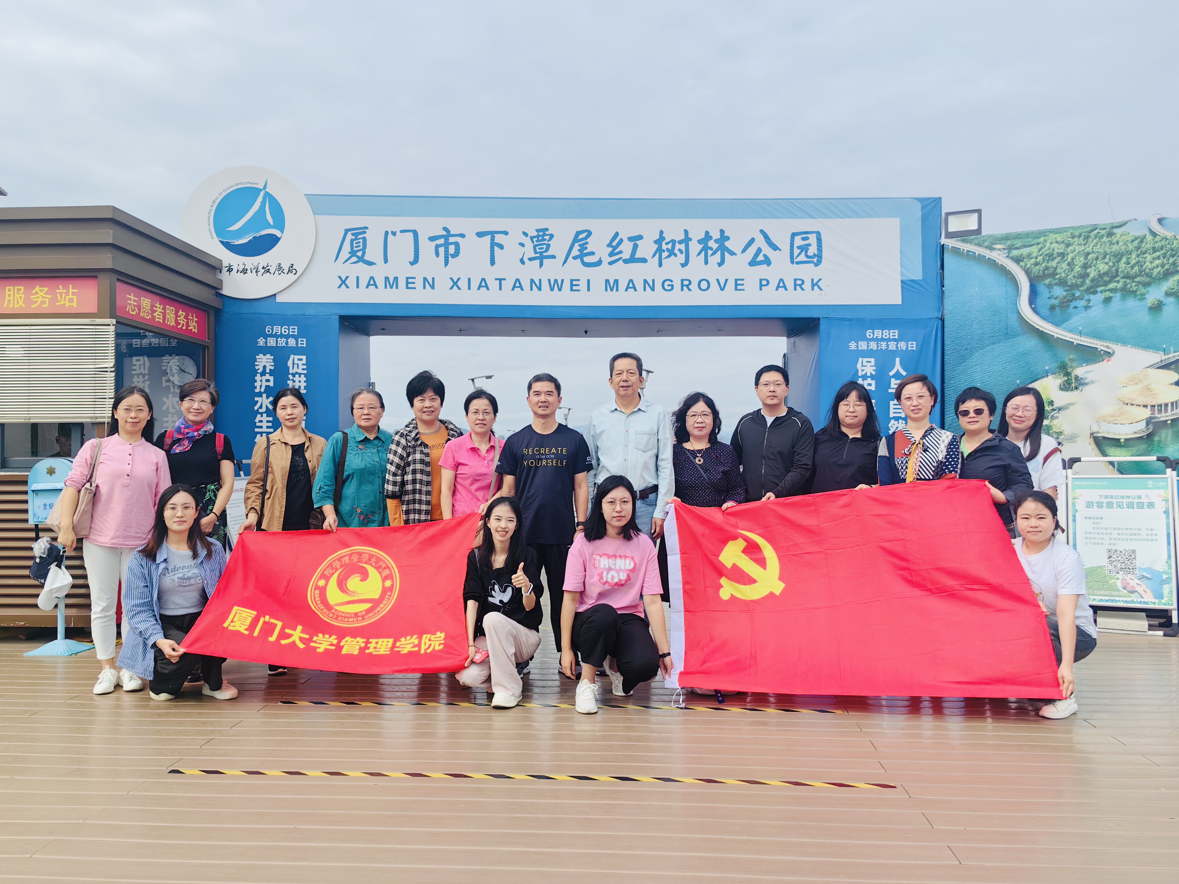 上午,大家来到了下潭尾滨海湿地公园,跟随杨盛昌老师和讲解员的步伐,参观了凤凰馆等展馆,学习了红树林生态修复的项目经验。习近平总书记强调,“一定要尊重科学、落实责任,把红树林保护好”。下潭尾滨海湿地公园将昔日杂乱的淤泥滩变成了鹭飞鱼跃的“海上森林”,筑牢了沿海地区的生态屏障。红树林的培育也离不开厦门大学多位专家院士的支持,参观结束后,老师们纷纷表示,这次活动增进了大家对自然环境的认识与了解,希望有更多厦大师生能够发扬优秀传统,投入可持续发展事业。