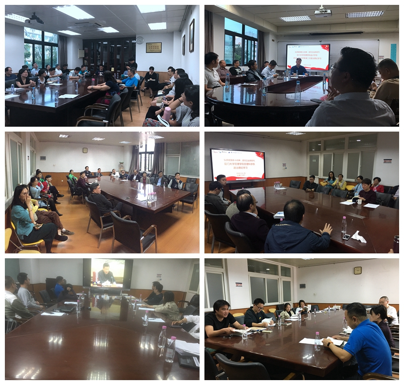 学习中,各系(中心)组织学习了习近平总书记在全国教育大会上的讲话,学习了习近平给中央美术学院老教授的回信,学习了黄群、宋月才、姜开斌3位勇士和李德威同志的先进事迹,引导广大教职工在新时代自觉弘扬践行爱国奋斗精神,不忘初心、牢记使命,增强“四个意识”,坚定“四个自信”,胸怀祖国、艰苦奋斗、开拓创新、无私奉献,立足本职岗位,加快推进学校“双一流”建设。
