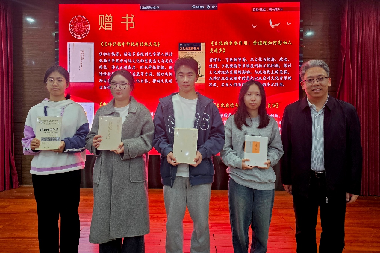 赠书仪式上,黄辉向各小组代表赠送了多本与文化主题密切相关的书籍。这些书籍涵盖了中国文化要义、文化的重要作用、怎样弘扬中华优秀传统文化等多个方面的内容。
