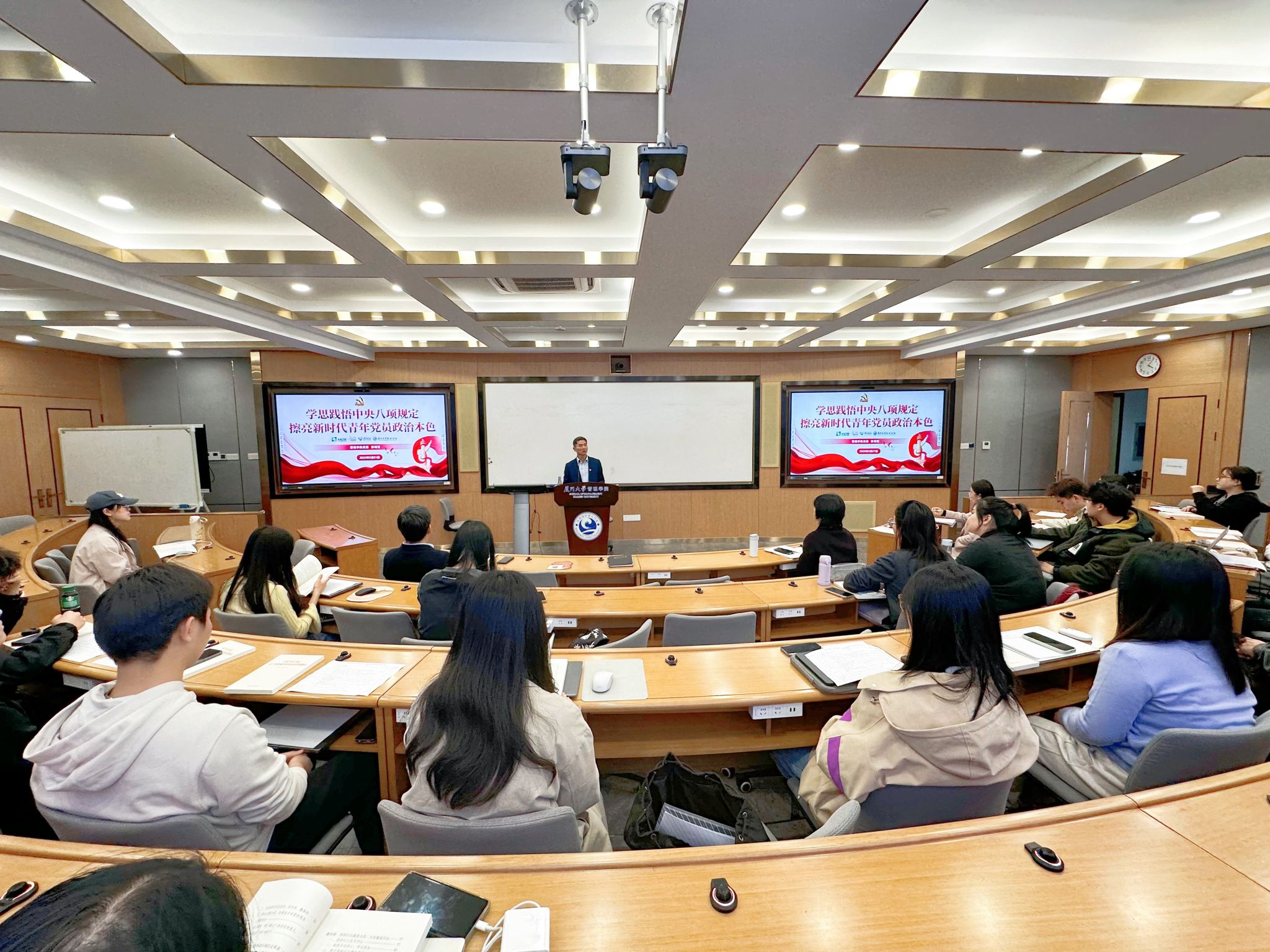 会议最后,张明智以《学思践悟中央八项规定精神,擦亮新时代青年党员政治本色》为题为学生支部书记讲授专题党课。