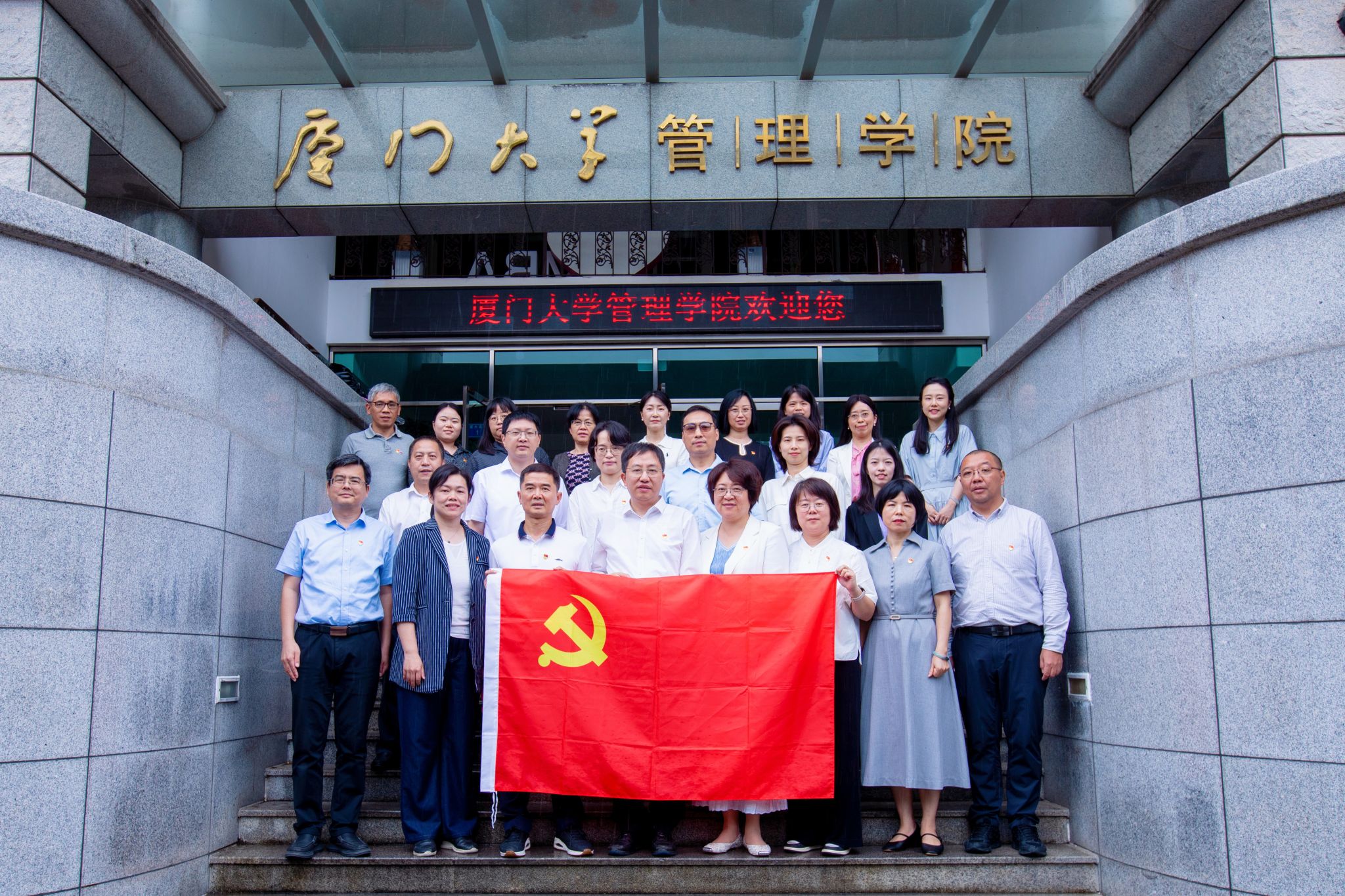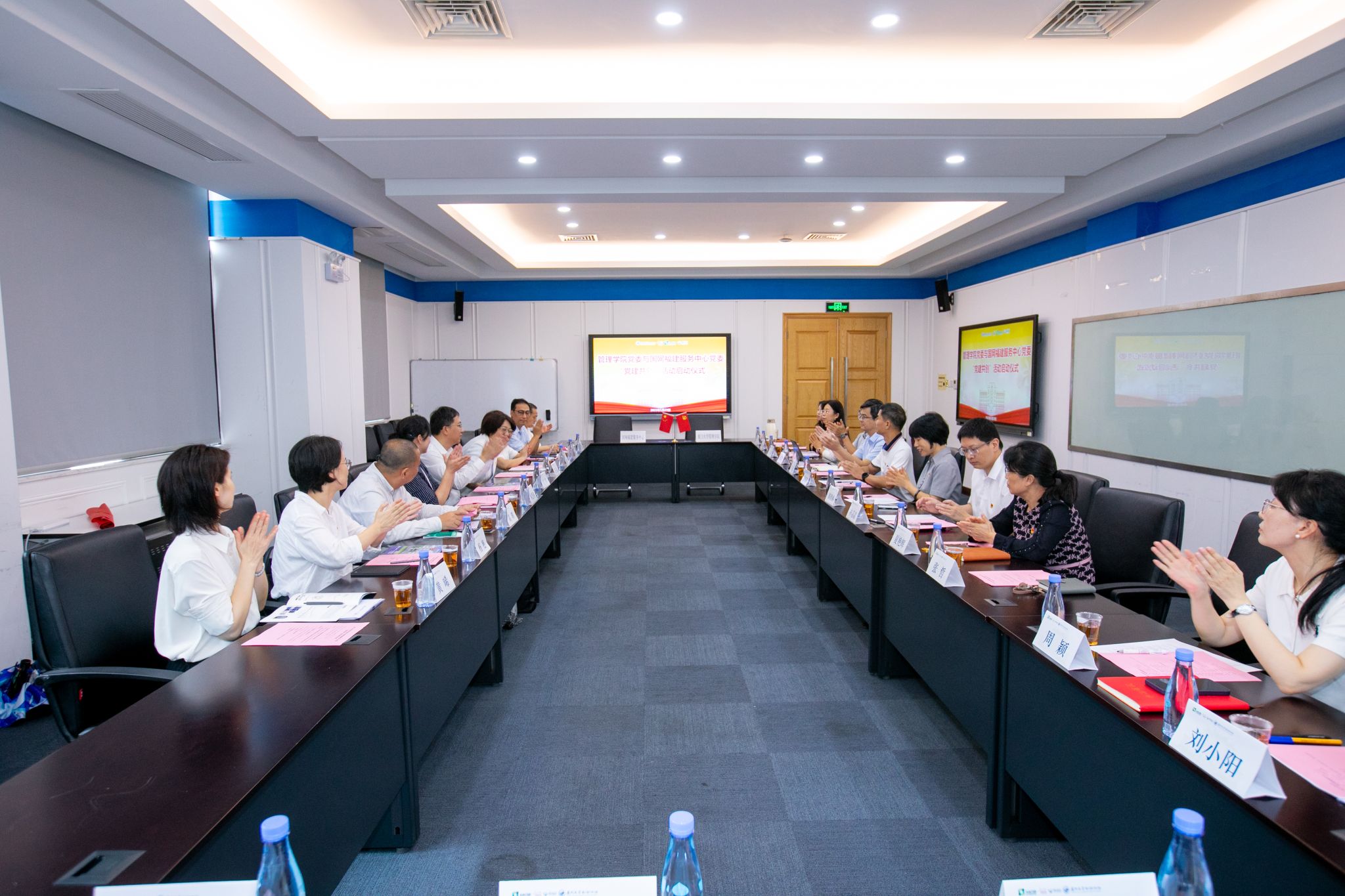 为深入贯彻落实党的二十大关于“深化新时代党建引领高质量发展”的重要部署,5月29日上午,厦门大学管理学院党委与国网福建服务中心党委举行了“党建共创”活动启动仪式。国网福建服务中心主任、党委副书记丁熹,党委书记、工会主席张宇芸及公司员工代表,管理学院党委书记张明智、党委副书记郑碧娇、周民钦及行政教工党支部党员代表参加仪式。仪式由郑碧娇主持。