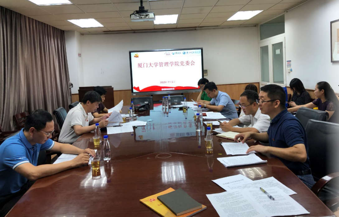 参访活动之后,管理学院召开党委委员会,学院党委书记邱七星主持会议。会议首先集体学习了《厦门大学学院党委会议事规则(暂行)》。邱七星对照文件逐条解读,并结合学院的实际情况,按照党委委员分工将工作落实、细化,并表示:党的建设标准越来越高,考核要求越来越严,责任制日益明确。全面从严治党,坚持党的全面领导,需要进一步理顺党委会和党政联席会的关系。