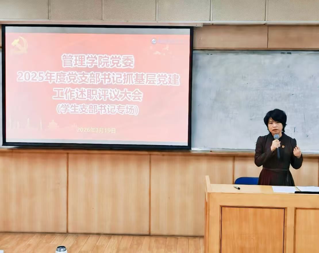 为进一步压紧压实党支部书记抓基层党建工作第一责任人责任,推动全面从严治党向基层延伸,提升基层党建工作质量,3月19日下午,管理学院党委在嘉庚二号楼203、208教室分别召开2025年度基层党支部书记抓基层党建工作述职评议大会学生支部专场。学院党委副书记郑碧娇、党委组织员、辅导员以及28名学生党支部书记,本研党建办学生骨干参加会议。