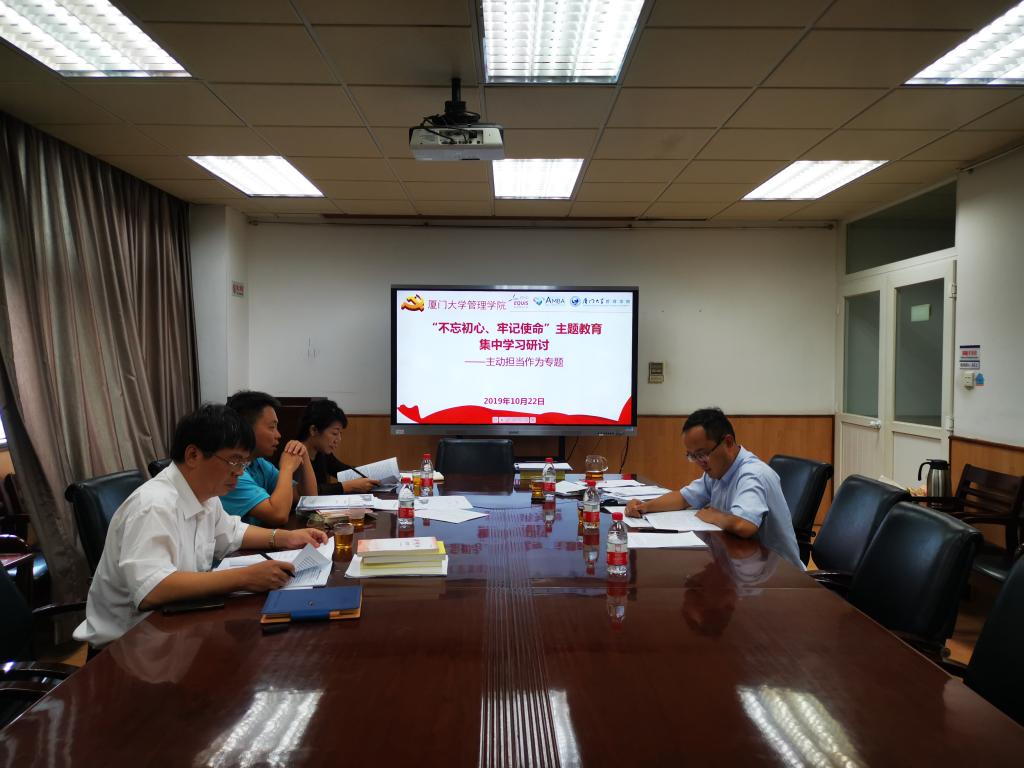 10月22日下午,管理学院党员领导干部围绕“主动担当作为”专题进行“不忘初心、牢记使命”主题教育第六次集中学习研讨。副院长于李胜主持学习会。