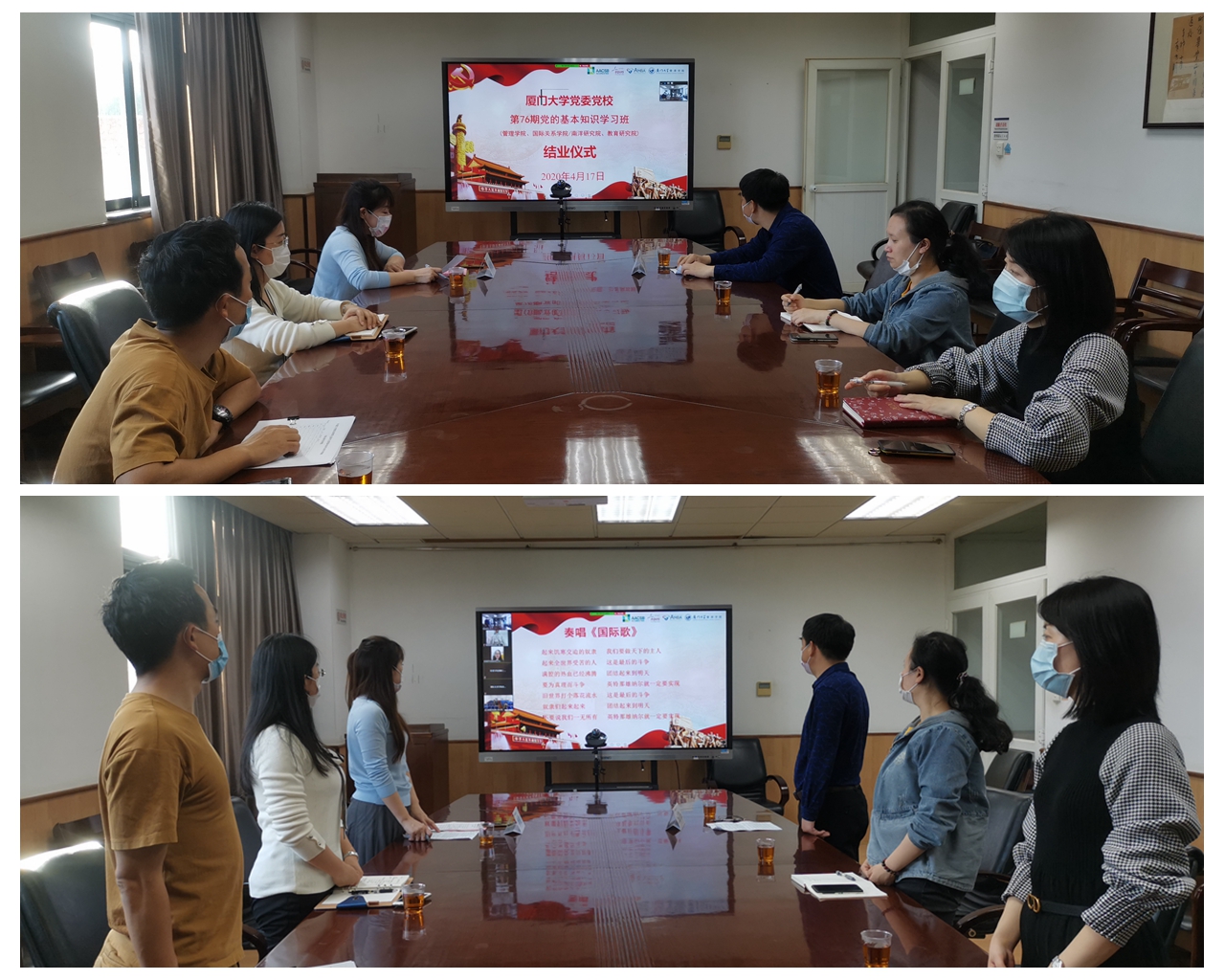 4月17日,厦门大学党委党校第76期党的基本知识学习班(管理学院、国际关系学院/南洋研究院、教育研究院)举行结业式,主会场设在管理学院嘉庚一301会议室,三院党委领导、带队教师和68名结业学员通过在线方式参加。国际关系学院/南洋研究院党委书记张必华作学习班总结讲话,管理学院党委副书记洪秋霞主持结业式。