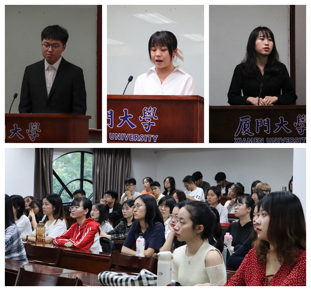 三位学员代表先后交流发言,他们结合自身经历,重审入党动机,总结收获成果。管理学院2018级本科生王启煜通过参观革命事迹陈列馆认识了党的早期发展,看到了党如何筚路蓝缕、带领人民走出水深火热,他深受触动、也倍感振奋。“新时代有新的挑战,仅仅使用理论武装头脑是不够的,应当培养政治素养、提升科学素养,敢于实践,兼备出众的能力和踏实的态度。”国际关系学院/南洋研究院2017级本科生康永沁认为党校学习使其对党的认识更加系统和全面,作为一名国际政治专业的学生,在此次抗击新冠肺炎疫情的伟大实践中,中华民族铸就的伟大抗疫精神,激发了民族自豪感与归属感。将继续学会担当社会责任,将所学知识内化于心、外化于行。教育研究院2018级硕士生楚湘江表示,作为当代青年,断不能没有理想和担当,不仅要做到在组织上入党,更要在思想上入党。同时要珍惜幸福生活的来之不易,创造更好的明天。
