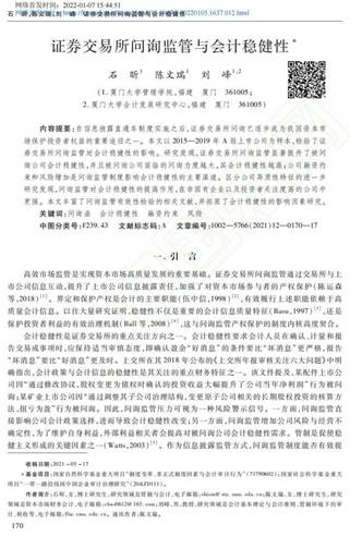 自信息披露直通车制度实施之后,证券交易所问询已逐步成为我国资本市场保护投资者权益的重要途径之一。本文以2015-2019年A股上市公司为样本,检验了证券交易所问询监管对会计稳健性的影响。研究发现,证券交易所问询监管显著提升了被问询公司会计稳健性,并且被问询公司面临的问询力度越大,其会计稳健性越高;公司融资约束和风险增加是问询监管制度影响会计稳健性的主要渠道。区分公司异质性特征的进一步研究发现,问询监管对会计稳健性的提高作用,在非国有企业以及投资者关注度高的公司中更强。本文丰富了问询监管有效性检验的相关文献,并拓展了会计稳健性的影响因素研究。