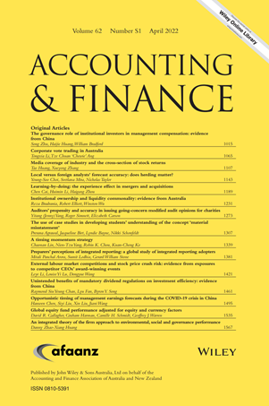 我院财务学系2020级硕士研究生黄玲与四川大学刘海月教授、美国加州州立大学长滩分校Jack Hou教授以及香港中文大学(深圳)硕士生Fulong Xiao合作撰写的论文“Long-term financing effects of Chinese non-SOEs Belt and Road OFDI”在期刊Accounting & Finance正式发表。