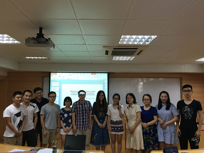 19日下午,朱翔老师由最基础的单机器单产品库存模型出发,鼓励大家进行现场推导,朱老师认为,锻炼大家的逻辑思考能力比单纯传授理论更加重要。下午另外一半的时间,由一个小组的同学(组员:檀哲、路佳静、王晓军)进行了论文汇报,朱老师对该小组的汇报进行了耐心细致的点评:(1)演讲的同学应该与听众进行眼神交流等互动;(2)汇报应该突出重点,可以去掉次要的结论;(3)更多地对结论含义进行探讨。最后,朱老师由这篇论文引出了第二天的上课内容。