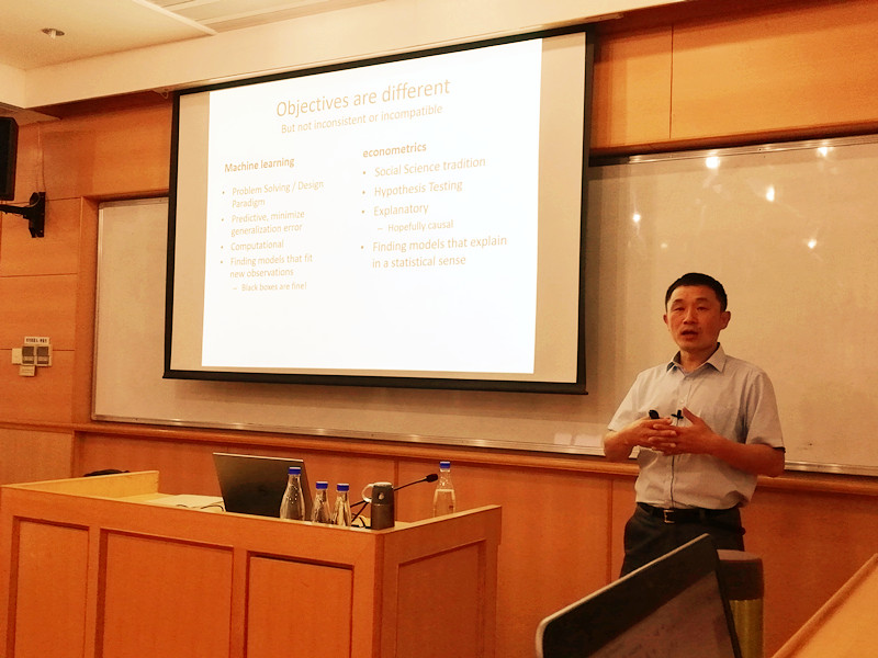 最后一堂课应大家要求,郑老师讲解了目前非常前沿的研究问题——机器学习。他首先介绍了机器学习方法和计量方法在目的、方法层面的不同之处,随后通过具体的事例总结如何才能将这两种方法进行有机结合,并向我们分享了几篇机器学习领域的文章,对其中存在的问题进行剖析。最后和我们共同探讨了携程前任CEO梁建章在Stanford读博期间发表在国际顶级期刊Quarterly Journal of Economics的文章,要求大家利用网上的公开数据尝试去复制该研究结果,通过自己的动手尝试切身感受顶级期刊的研究思路和研究方法。