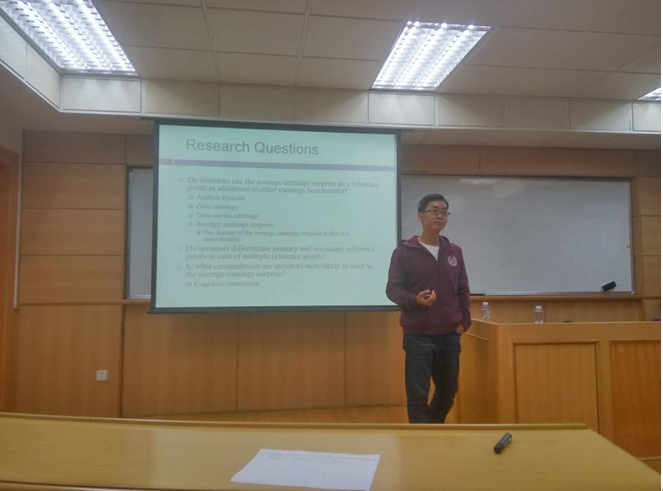 3月10日上午,厦门大学管理学院第一百五十一期财务、会计seminar讲座在我院如期举行。来自昆士兰大学何文教授做了一场题为《Comparing with the Average: Reference Points and Market Reactions to Above-Average Earnings Surprises》的学术报告。我院会计系与财务系教师、研究生参加了此次学术报告。