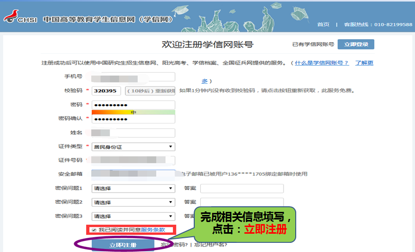 步骤2:注册学信网账号(只能注册一个),如已注册,请直接登录。请谨记用户名和密码