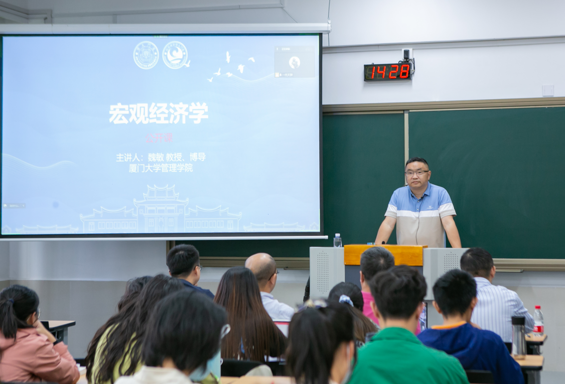 2022年10月19日下午,管理学院《宏观经济学》课程思政公开课在南强二108开讲,授课对象是管理学院2021级本科学生。该课程由旅游与酒店管理系教授魏敏教授主讲,管理学院党委书记邱七星、副院长白云涛教授、旅游与酒店管理系副主任郑伟民副教授、余及斌助理教授现场参与。