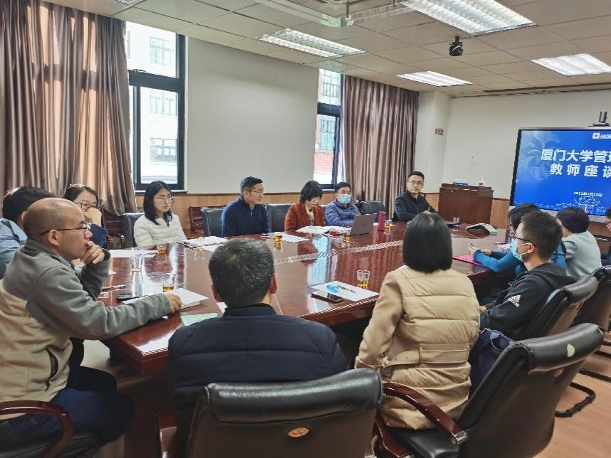 为深入贯彻落实《普通高等学校本科教育教学审核评估实施方案(2021—2025年)》,扎实做好2023年普通高等学校本科教育教学审核评估迎评工作,根据学校要求,管理学院积极开展审核评估自评工作。于2月22日下午,学院在嘉庚一301举行教师代表座谈会,聚焦本科教育教学质量、人才培养、课程思政等广泛听取意见。管理学院副院长白云涛、各系11名教师代表、教学秘书出席座谈会。会议由学院党委副书记郑碧娇主持。