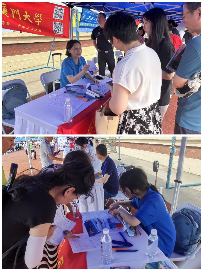 高招会现场前来咨询的考生和家长络绎不绝、场场爆满。学院参加招生工作的老师热情洋溢地解答考生报考的各种咨询问题,耐心解读学校招生政策,讲解学科专业特色与优势,介绍大类招生方案、转专业、保研的相关政策,宣传依山傍海旖旎的厦园风光及丰富多彩的厦园生活等。帮助学子们了解了个人的专业发展方向、职业规划和专业优势选择,助力学子们今后的生涯规划发展和个人价值实现。作为国内第一所也是目前唯一一所海外分校,厦门大学马来西亚分校备受关注。招生负责人详细介绍了厦大马校专业设置、前沿学科、课程教学、升学就业等情况。