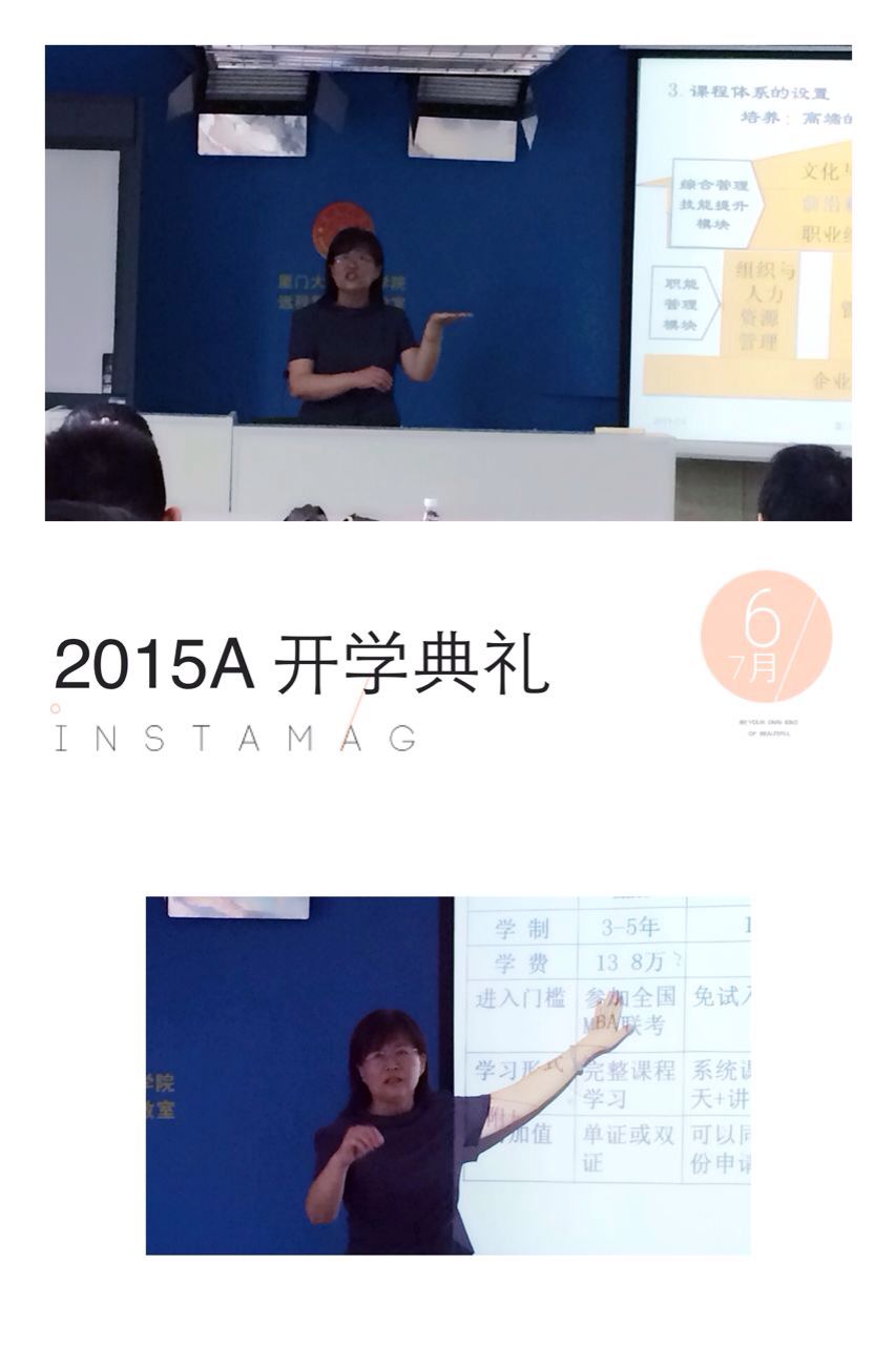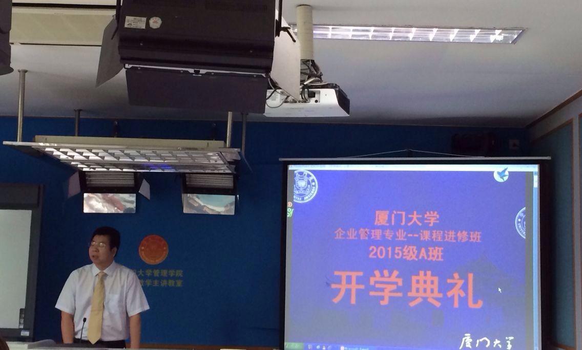 2015年7月4日上午,厦门大学管理学院企业管理系2015A课程进修班开班典礼在管理学院保欣丽英楼(嘉庚一)408举行。厦门大学管理学院党委书记沈维涛教授、企业管理系副主任熊英子副教授、管理学院EDP中心副主任何燕珍副教授、管理学院外聘老师刘元量老师、班主任赵苏燕老师以及36位新学员出席了此次开班典礼。