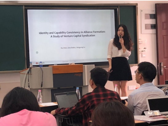 2018年10月28日上午,北京大学光华管理学院博士研究生沈睿在南强305分享了主题为“身份信号与能力信号的一致性对联盟形成的影响:基于VC联合投资的研究”的演讲,主要内容是探讨身份信号和能力信号两者之间的张力,提出企业转型的方向与其身份信号、能力信号之间的一致性会影响潜在联盟伙伴对该企业的评估。以中国风险投资行为为研究情境,利用风险投资机构的投资数据,投资偏好陈述以及人员招聘信息加以验证。