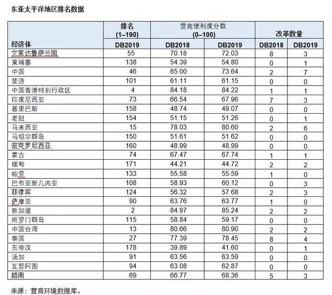 – 中国在《2019年营商环境报告》中每个经济改革数量中排名第2,有7项改革。