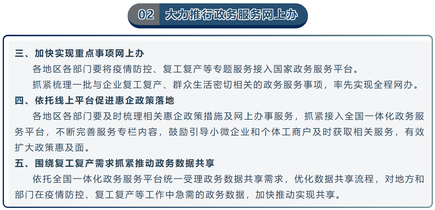 2020年3月17日,李克强总理主持召开国务院常务会议,再次强调,要深化“放管服”改革,取消妨碍复工复产的不合理规定,清理取消不合时宜的临时管制措施和不合理的证明、收费等规定。各项助企纾困政策落实要简化手续,政府涉企事项尽可能网上办理,为企业复工复产营造优良的营商环境,尽快让企业特别是小微企业和个体工商户普遍受益。