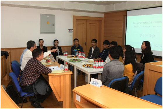 在听取自评报告后,上午10:10,专家组与教师代表、学生代表及管理人员座谈,对厦门大学物流工程硕士学位授权 点进行综合考察。