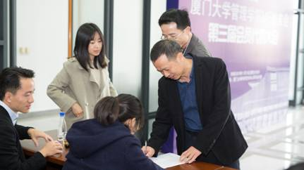 会议聘请了计国君教授等九人作为校友会顾问,第二届ME校友会会长陈辉煌获得荣誉会长,之后,会议宣读第三届理事会提名名单并进行表决,蒋英当选会长,陈劲等26人当选副会长,林华生当选秘书长,陈燕鹭当选常务副秘书长,张景等28人当选副秘书长,并邀请管理学院专业硕士中心蔡舜主任为各位当选理事现场颁发聘书。