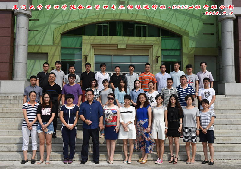2015年7月4日上午,厦门大学管理学院企业管理系2015A课程进修班开班典礼在管理学院保欣丽英楼(嘉庚一)408举行。厦门大学管理学院党委书记沈维涛教授、企业管理系副主任熊英子副教授、管理学院EDP中心副主任何燕珍副教授、管理学院外聘老师刘元量老师、班主任赵苏燕老师以及36位新学员出席了此次开班典礼。