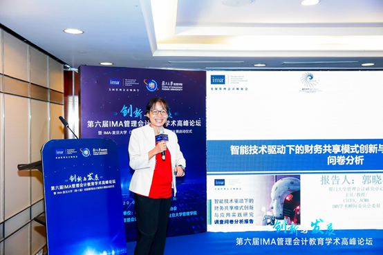 厦门大学管理会计研究中心郭晓梅教授在会上做了《智能技术驱动下的财务共享模式创新与应用实践研究》的中期调查问卷分析报告。