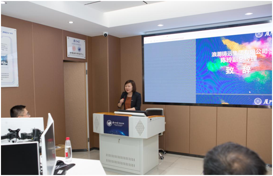 颁证后,浪潮铸远教育科技有限公司副总经理陈玲致辞。她首先介绍浪潮铸远教育科技有限公司的成立背景:为浪潮集团和厦门铸远集团于2018年联合创立。其主要业务内容是为高校产教融合提供课程体系、持续实践、创新创业等各项帮助。其次,她谈到了厦门大学共享财务虚拟仿真教学实验室项目。该项目是教育部产教融合协同育人项目的一个组成部分。源于厦门铸远集团和厦门大学管理会计研究中心的2016年开始的产教研合作。共享财务虚拟仿真教学实验室既满足了行业降本增效规范业务的需求,又为学生提供了真帐实操的学习机会,提升学生财务管理的思维。本项目已取得了可喜的进展。最后她说道,浪潮铸远公司与于厦门大学管理会计研究中心签署战略合作协议,将继续在人才培养、科研开发等方面展开合作,相信在双方的共同努力下,双方的合作将硕果累累。